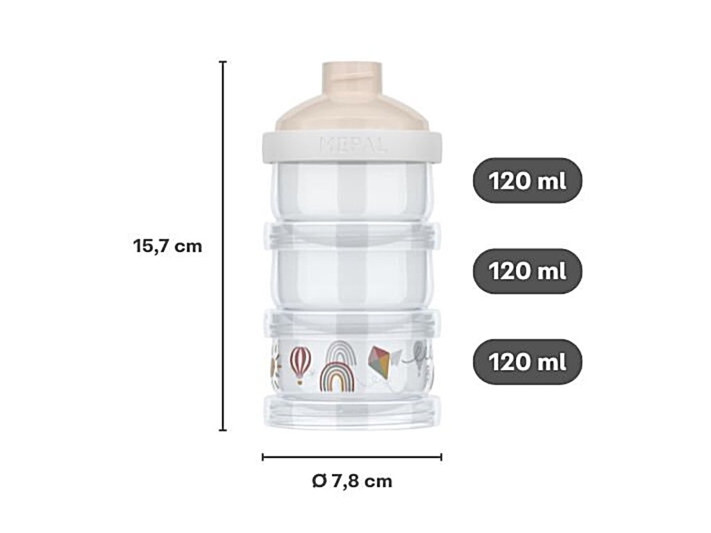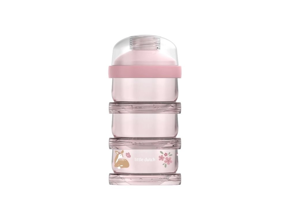 Trojdielna nádoba na sušené mlieko Little Dutch Forest Friends ponúka jednoduchý a hygienický spôsob prípravy dojčenského mlieka doma na cestách. Nádoba obsahuje tri stohovateľné tégliky, ktoré sú jednotlivo uzavreté skrutkovacími viečkami. Praktické nasýpacie viečko hore uľahčuje dávkovanie sušeného mlieka do fľaše. ideálny na prípravu mlieka v noci aj na cestách hermeticky uzatvárateľné pre tri odmerané dávky sušeného mlieka vhodné do umývačky Dávkovač s krásnou potlačou je súčasťou dizajnovej kolekcie hračiek a doplnkov Little Dutch Fairy Garden, inšpirovanej životom na záhrade. Objem: 3 x 120 ml Zloženie: 100% PP, bez obsahu BPADodatočné parametre