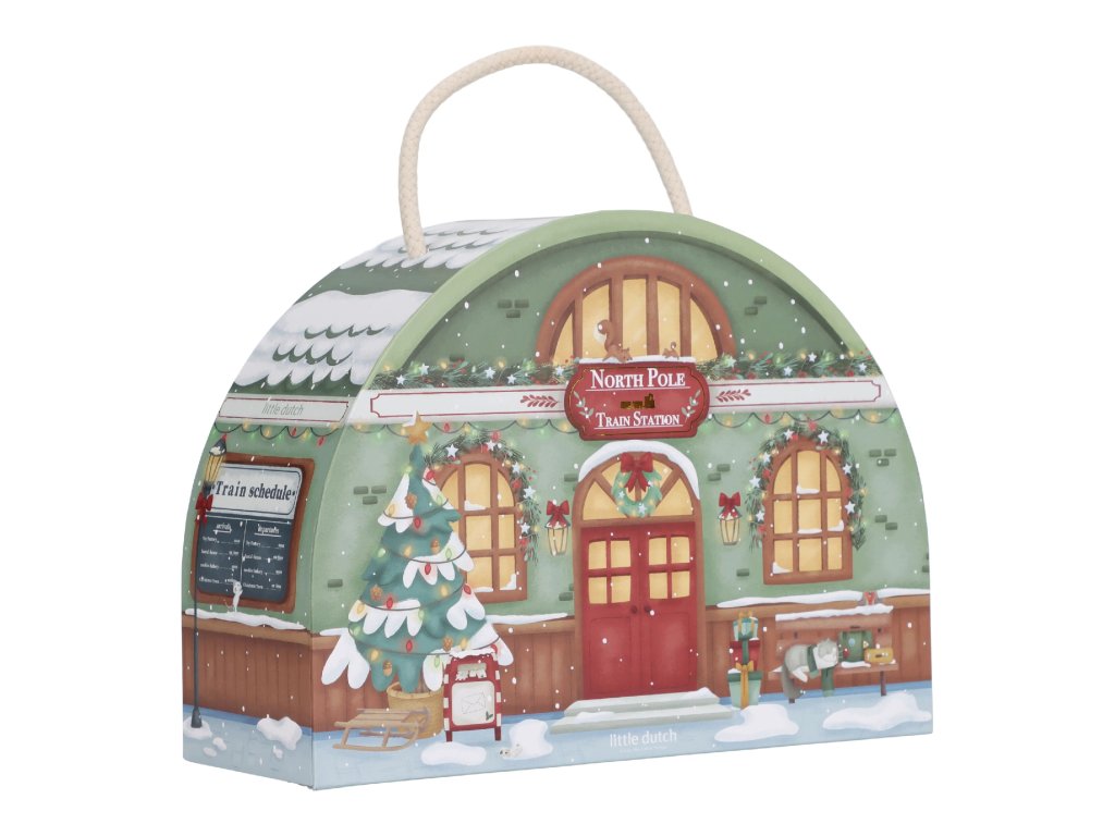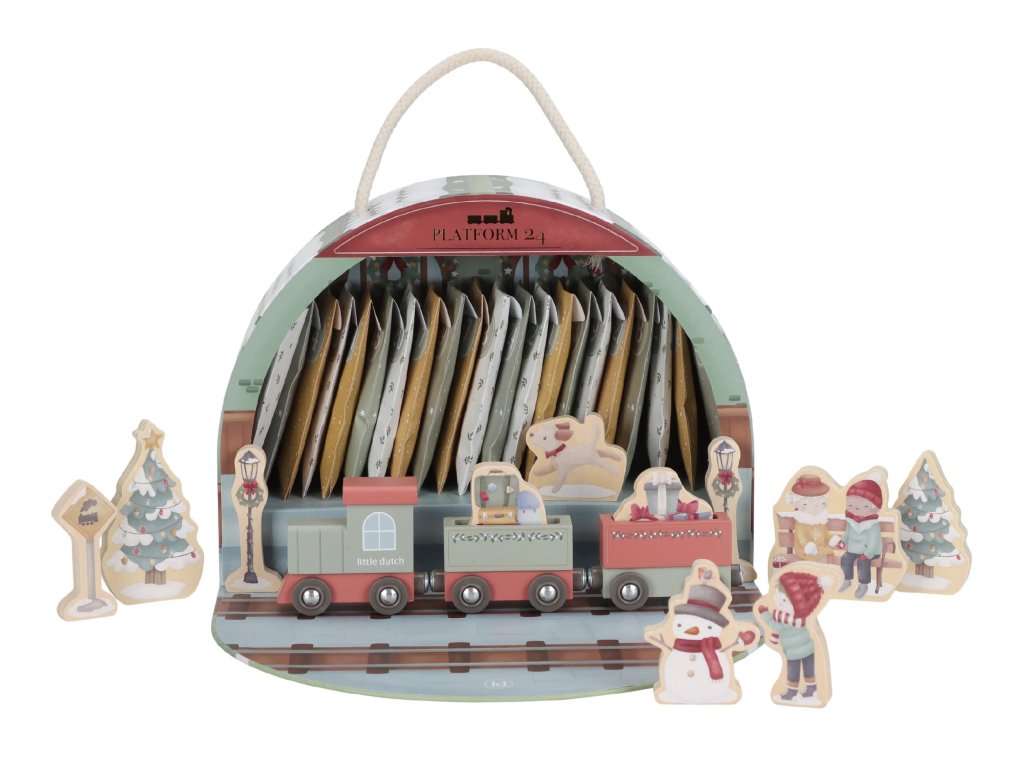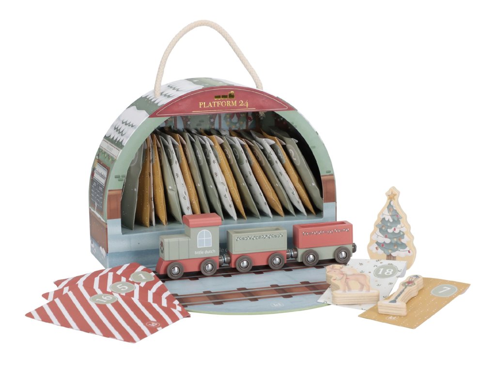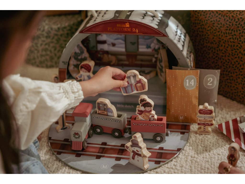 Adventný kalendár Little Dutch v podobe vianočnej stanice premení čakanie na Vianoce na radostné dobrodružstvo plné prekvapení a fantázie. 24 drevených prekvapení - každý deň v decembri objaví dieťa nový dielik - lokomotívu, stromček, soba, snehuliaka, kufre, dopravné značky a ďalšie doplnky, ktoré spoločne vytvárajú kúzelnú vianočnú scénu Rozvoj kreativity - deti sa každý deň učia počítať, objavovať a tvoriť, zatiaľ čo skladajú celý vianočný svet Kúzelná tradícia - krásny spôsob, ako si užiť spoločné chvíle počas adventu a tešiť sa na Štedrý deň Kompatibilný s Little Dutch drevenou vláčikovou dráhou Kvalitné materiály - vyrobené z FSC certifikovaného dreva a MDF, balené v pevnom kartónovom kufríku s kovovými úchytmi a bavlnenou rukoväťou Rozmery kufríka: 30,5 × 11,2 × 22,5 cm Zloženie: drevo (FSC/MDF), kartón, bavlna, kov Vhodné pre deti od 2 rokov.Dodatočné parametre