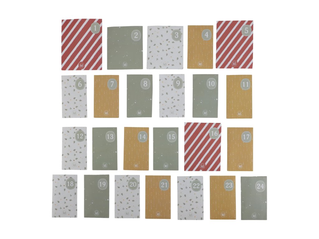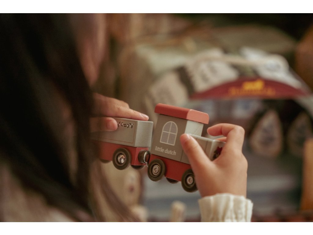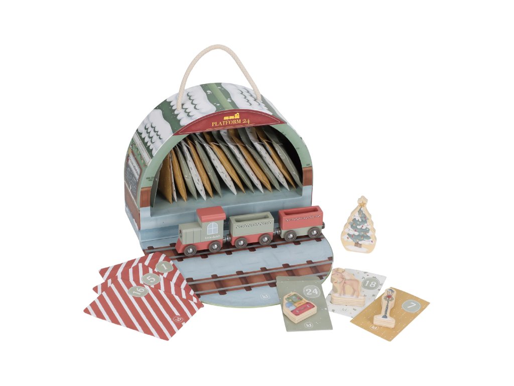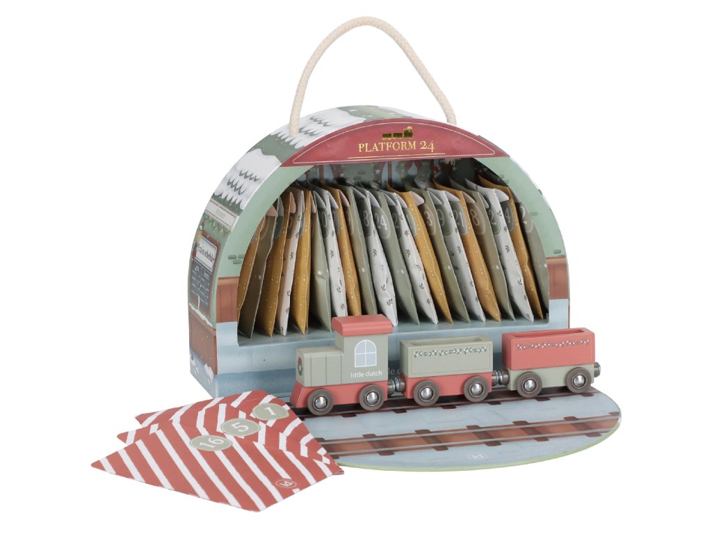 Adventný kalendár Little Dutch v podobe vianočnej stanice premení čakanie na Vianoce na radostné dobrodružstvo plné prekvapení a fantázie. 24 drevených prekvapení - každý deň v decembri objaví dieťa nový dielik - lokomotívu, stromček, soba, snehuliaka, kufre, dopravné značky a ďalšie doplnky, ktoré spoločne vytvárajú kúzelnú vianočnú scénu Rozvoj kreativity - deti sa každý deň učia počítať, objavovať a tvoriť, zatiaľ čo skladajú celý vianočný svet Kúzelná tradícia - krásny spôsob, ako si užiť spoločné chvíle počas adventu a tešiť sa na Štedrý deň Kompatibilný s Little Dutch drevenou vláčikovou dráhou Kvalitné materiály - vyrobené z FSC certifikovaného dreva a MDF, balené v pevnom kartónovom kufríku s kovovými úchytmi a bavlnenou rukoväťou Rozmery kufríka: 30,5 × 11,2 × 22,5 cm Zloženie: drevo (FSC/MDF), kartón, bavlna, kov Vhodné pre deti od 2 rokov.Dodatočné parametre