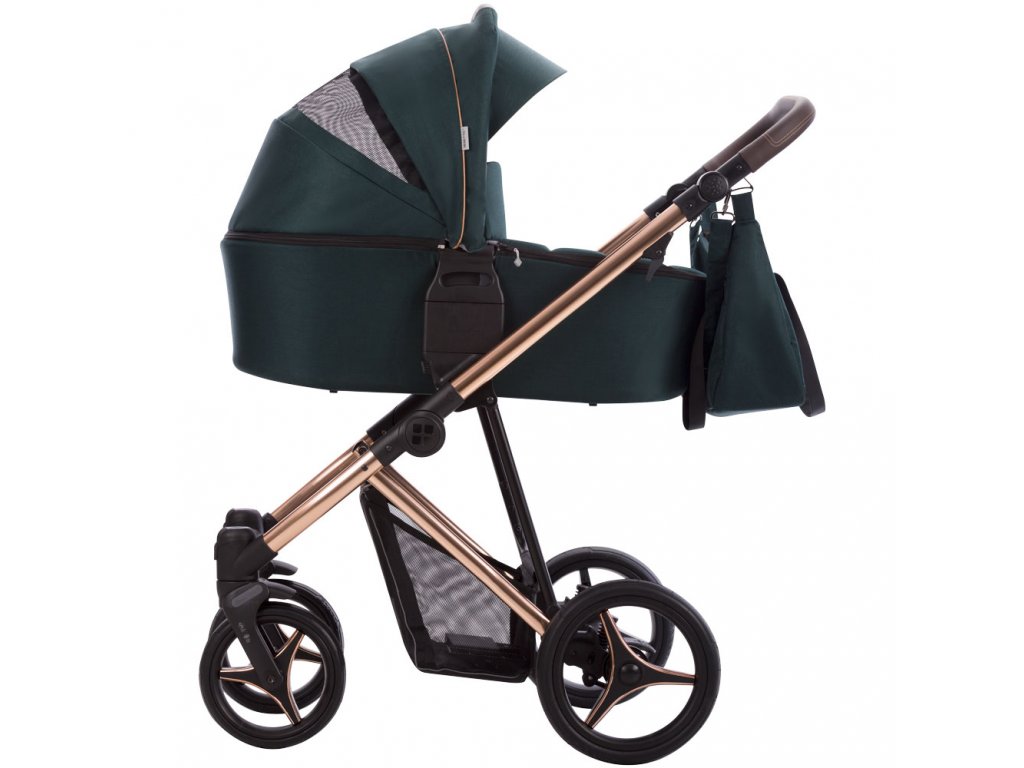 Chcete sa tiež zamerať na pútavý vzhľad? Kočík z eko kože na medenej konštrukcií pôsobí luxusne a zaujme na prvý pohľad.