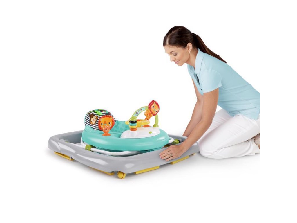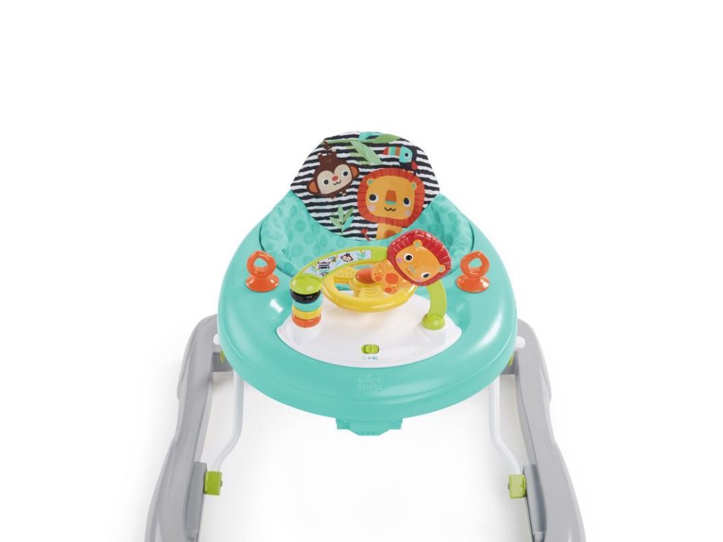 Predtým, než Vaše dieťatko urobí sám prvé kroky, môže prostredníctvom chodítka preskúmať svet a hľadať nové dobrodružstvá. Priateľský motív zvieratiek zo safari sprevádza dieťatko pri objavovaní.Odnímateľný hrací pult obsahuje hračky s aktivitami, ktoré dieťatku pomáhajú rozvíjať motorické zručnosti. Poskytuje tak aj zábavu počas hier na podlahe. Volant aktivuje svetlá a zábavné zvuky. Vysoké zadné operadlo poskytuje mimoriadnu podporu pre dieťatko. Chodítko je možné nastaviť do 3 výškových polôh, čím sa chodítko prispôsobuje rastu dieťatka.