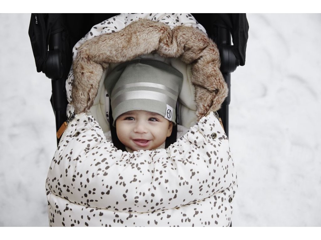 Elegantní podzimní a zimní bavlněná čepice je vyrobena z přírodních mikrovláken, které poskytují prodyšnost a odvádí vlhkost. Dvouvrstvá směs tencelu a bavlny je měkká a elastická, proto dobře drží tvar. Čepice má metalické pruhy a logo Elodie.