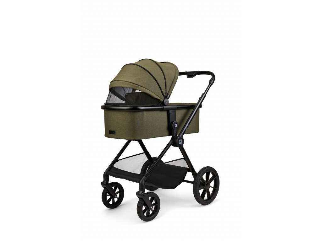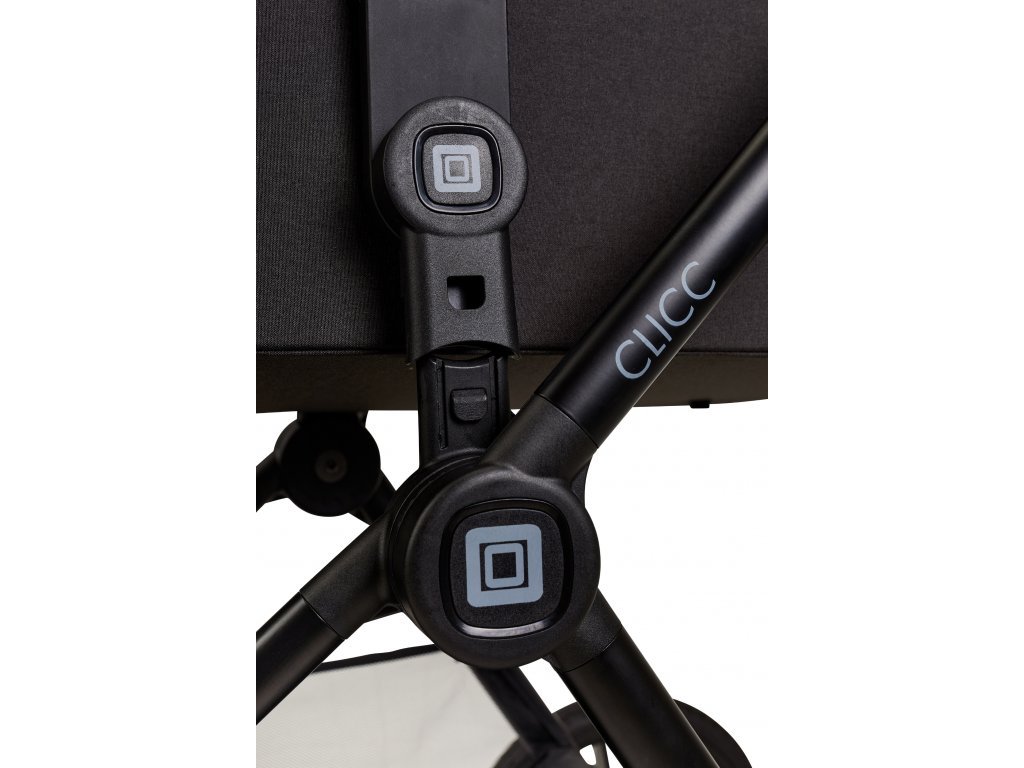 NOVINKA MOON CLICC je ľahký dobre skladný a priestranný kočík, ktorý obsahuje hlbokú vaňu, športovú časť, podvozok, nánožník, prebalovaciu tašku vo farbe kočíka, pláštenku a adaptéry na autosedačku.