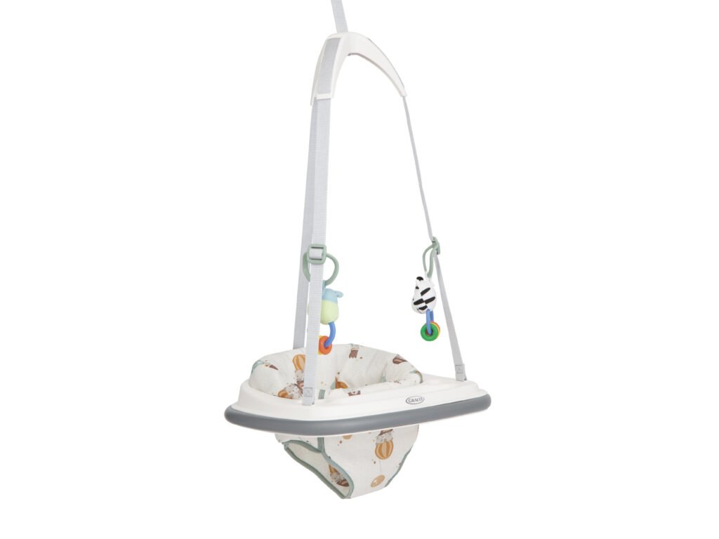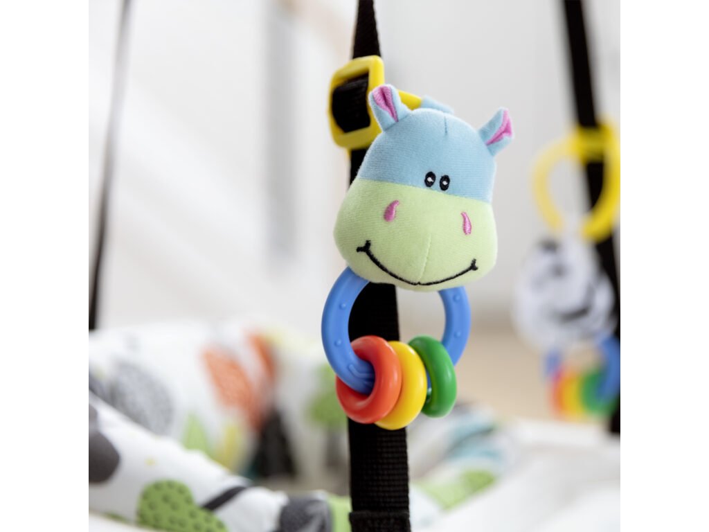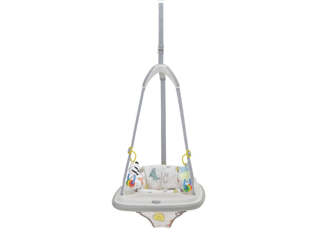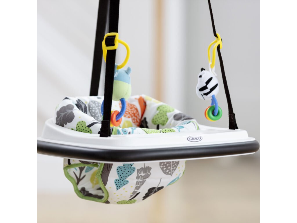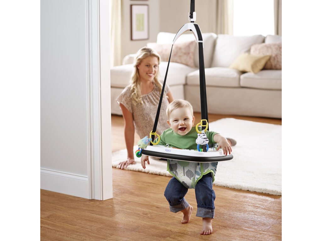 Bezpečná zábava - Kvalitná svorka pevne uchytí hopsadlo na rám dverí, popruhy s ukrytým bezpečnostným lankom pevne drží sedadlo, a vďaka gumovému okraju nedôjde k poškodeniu zárubni dverí. Ostáva len nastaviť vzdialenosť od podlahy a zábava môže začať!