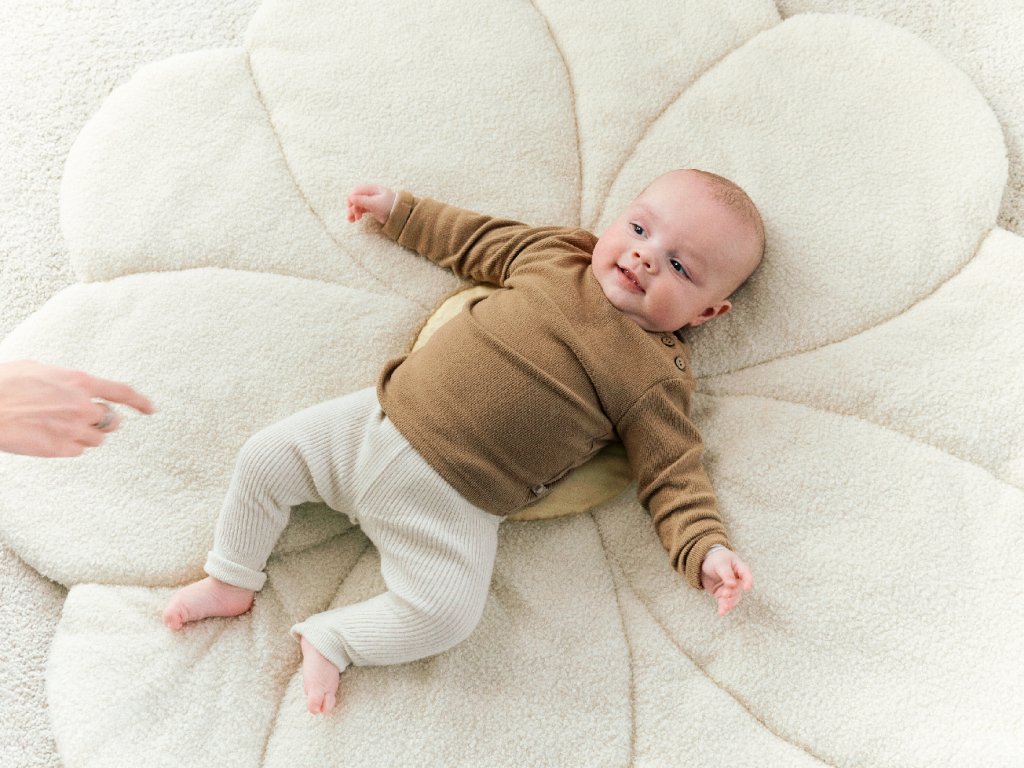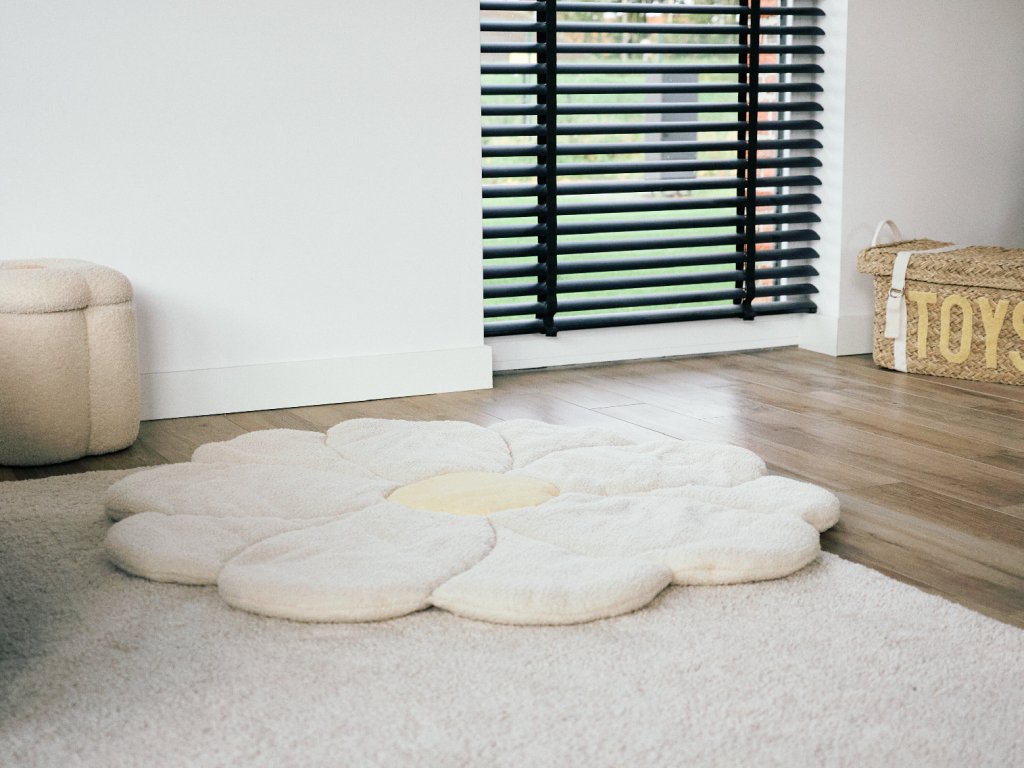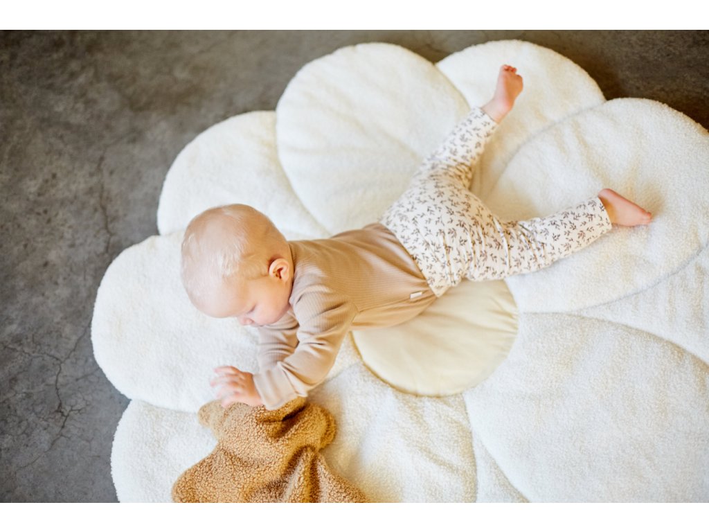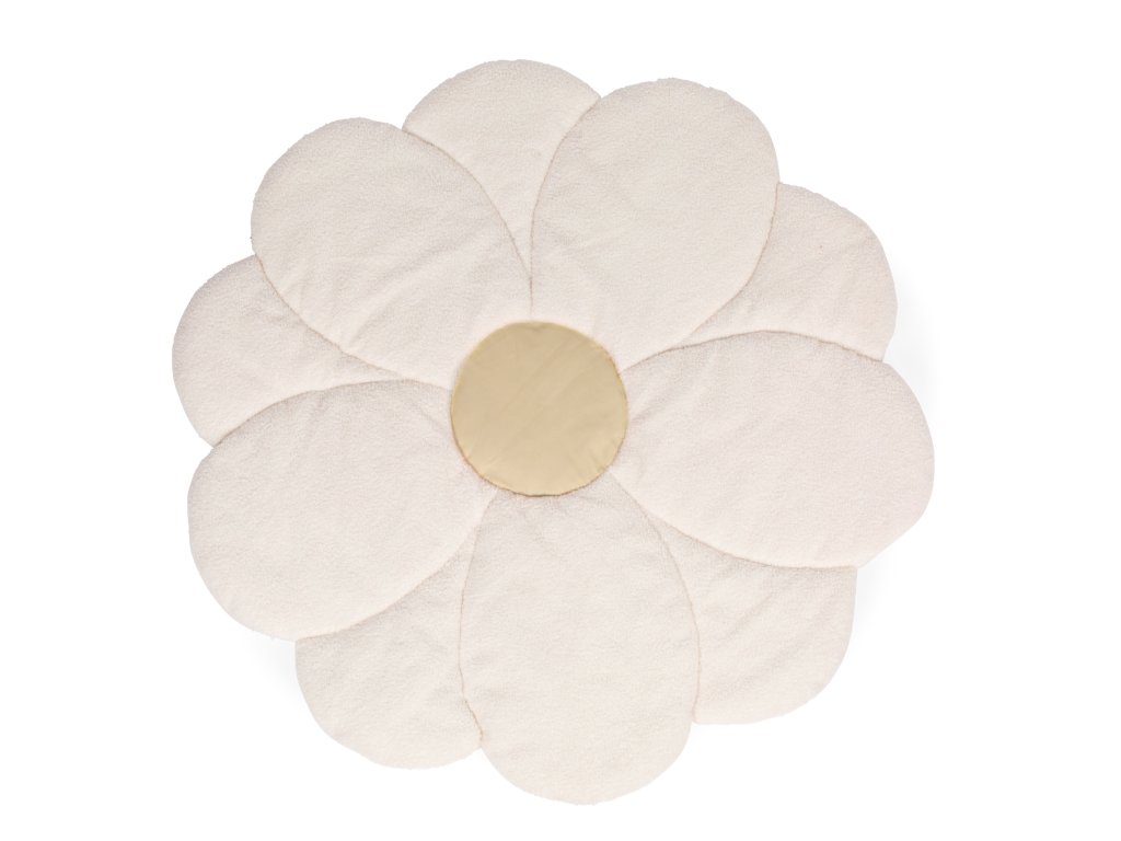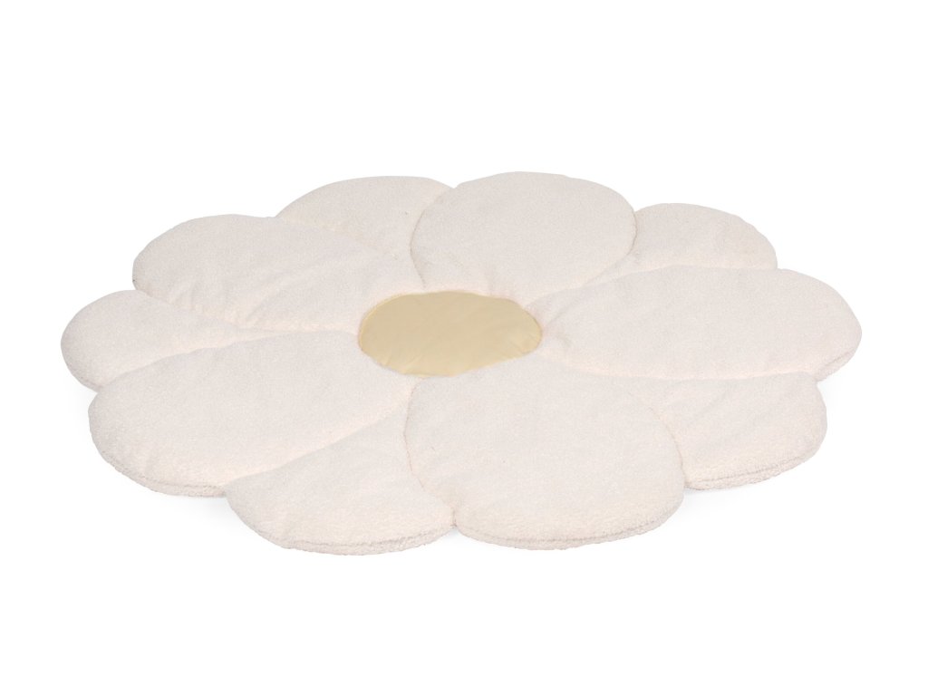 Mäkká hracia deka v podobe obrovskej kvetiny spríjemní hranie dieťaťa na zemi a zároveň slúži ako krásna dekorácia detskej izby. Rozmery: 110 x 110 x 2 cm Materiál: 100% polyester Deku je možné prať v práčke.Dodatočné parametre