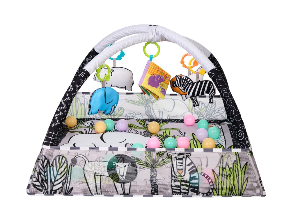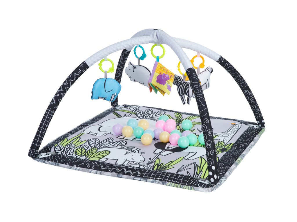 Hracia deka s hrazdou KikkaBoo Jungle je ideálnou voľbou pre rozvoj dieťaťa v prvých rokoch života. Pohodlná hracia deka s krásnymi motívmi zo života v džungli je navrhnutá tak, aby podporovala zmyslový rozvoj a motorické zručnosti dieťaťa od narodenia až do 36 mesiacov. Všestranné možnosti hry Vhodná pre hru na chrbte, na brušku aj v sede Podporuje rozvoj jemnej aj hrubej motoriky počas jednotlivých vývojových fáz Stimulujúce prostredie pre zmysly Obsahuje 18 farebných loptičiek pre zábavnú hru Odnímateľná hrádza s interaktívnymi hračkami poskytuje vizuálnu a hmatovú stimuláciu Pomáha rozvíjať koordináciu rúk a nôh naťahovaním a kopaním Bezpečný a prispôsobivý priestor Umožňuje uzavrieť všetky štyri strany pre vytvorenie útulného prostredia pre hru Vhodné aj ako loptičkový bazénik pre väčšie deti Rozmery: 78 × 75 × 50 cm Hmotnosť: 0,61 kg Vhodné pre deti od narodenia.Dodatočné parametre