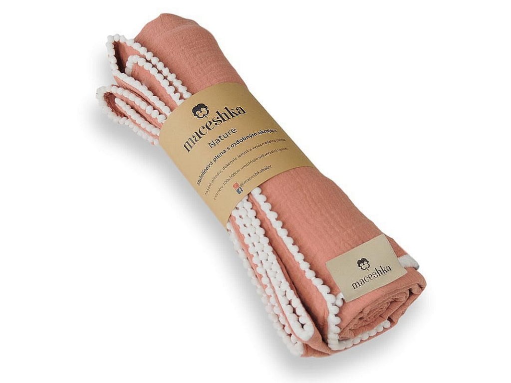 Plienka Maceshka je vyrobená z bavlneného mušelínu. Jedná sa o jednu z nejjednoduchších, najjemnejších a najčistejších foriem tkaniny na svete. Vďaka otvorenej väzbe vlákien je materiál veľmi ľahký a vzdušný a priedušný. Zároveň je veľmi príjemný na pokožke. Vďaka svoju jemnosť a ľahkosť sa jedná o veľmi odolný a pevný materiál. Bez problémov môžete mušelín prať, postupom času sa bude stávať ešte jemnejším.