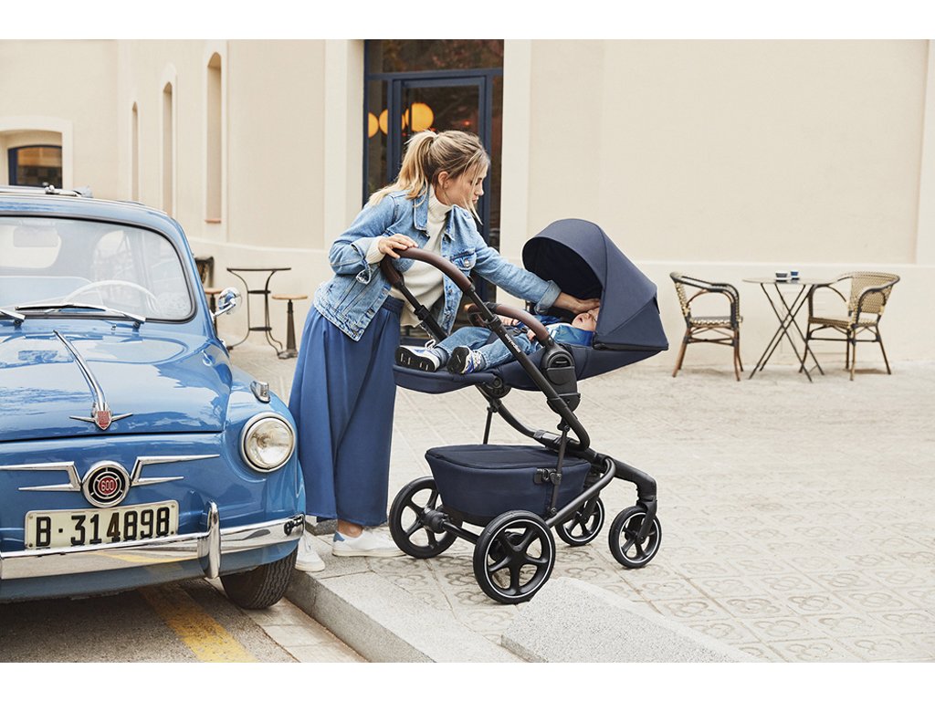 - extra veľká strieška so sieťkou (UPF 50) a slnečnou clonou a vetraním pre všetky poveternostné podmienky