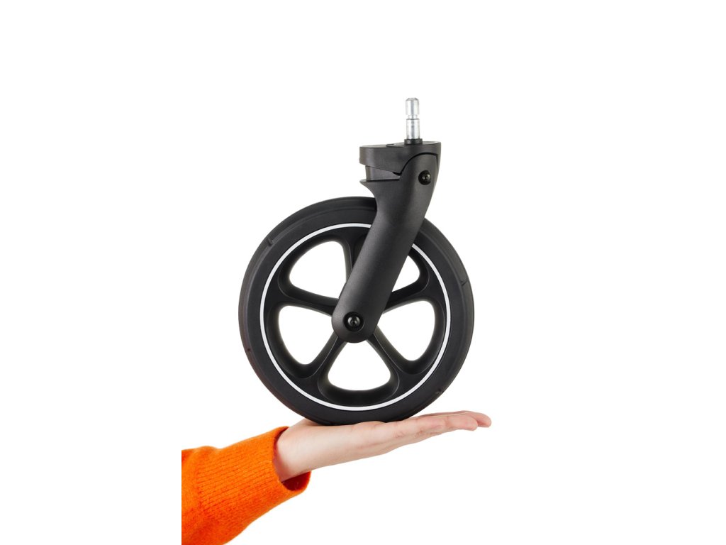 - gumové kolesá odolné voči prepichnutiu s odpružením a vlastnosťami, ktoré pripomínajú nafukovacie kolieska