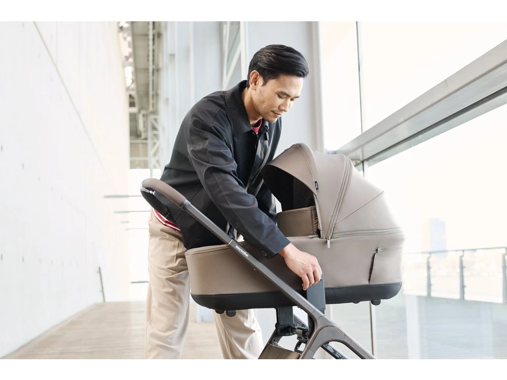 - Veľké, pohodlné sedadlo s tromi nastaviteľnými polohami sklonu, ktoré možno ľahko prepínať medzi režimami orientácie smerom v jazde a proti smeru jazdy