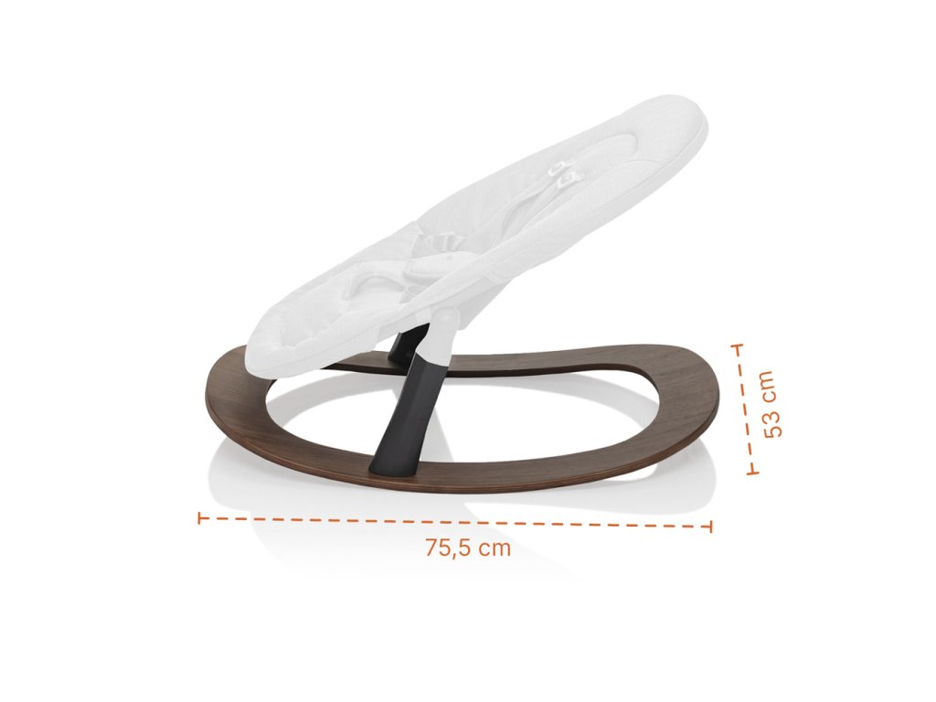 Po pripojení hojdacej základne sa novorodenecký set zmení na pohodlné ležadlo. Jemné kolísanie bábätko upokojuje a podporuje jeho prirodzený rytmus spánku aj oddychu. Základňa je stabilná, jednoducho sa nasadzuje a vďaka elegantnému drevenému dekoru zapadne do moderného interiéru.