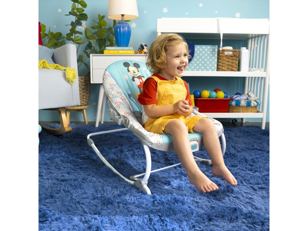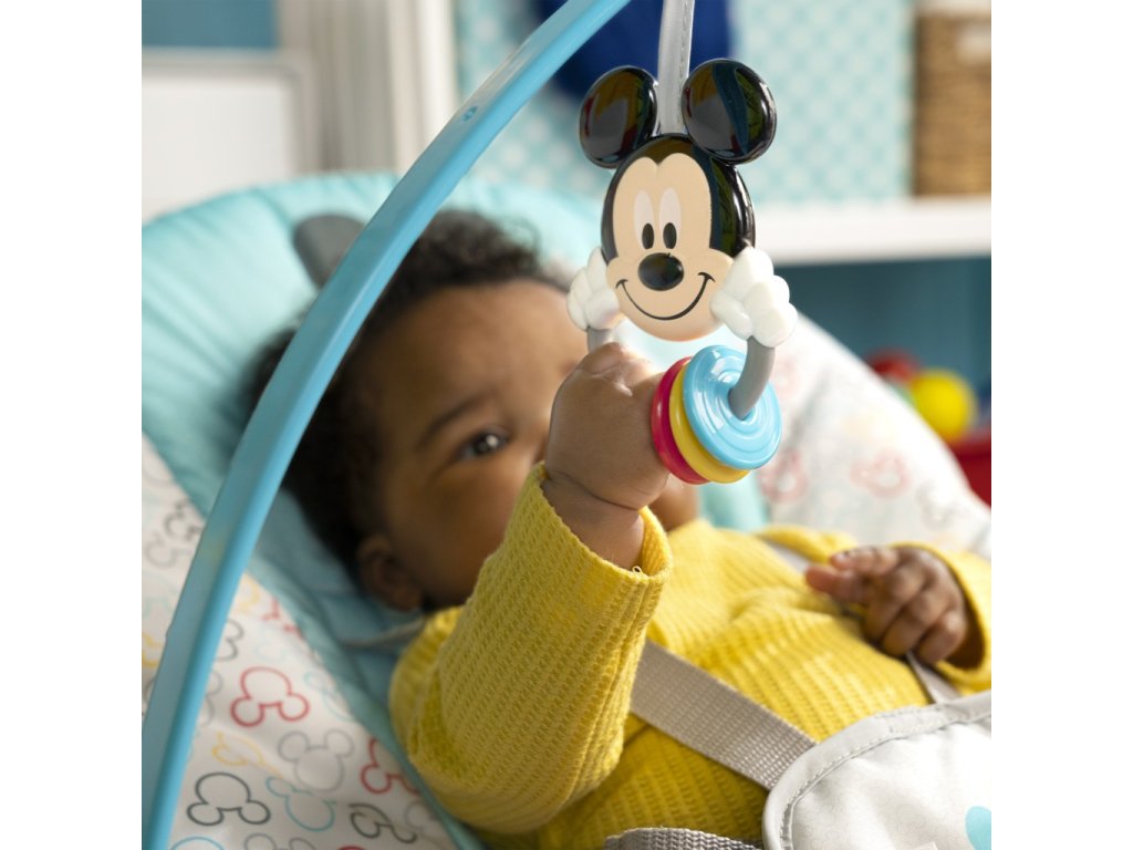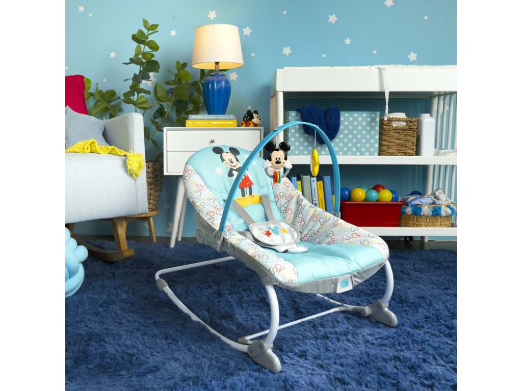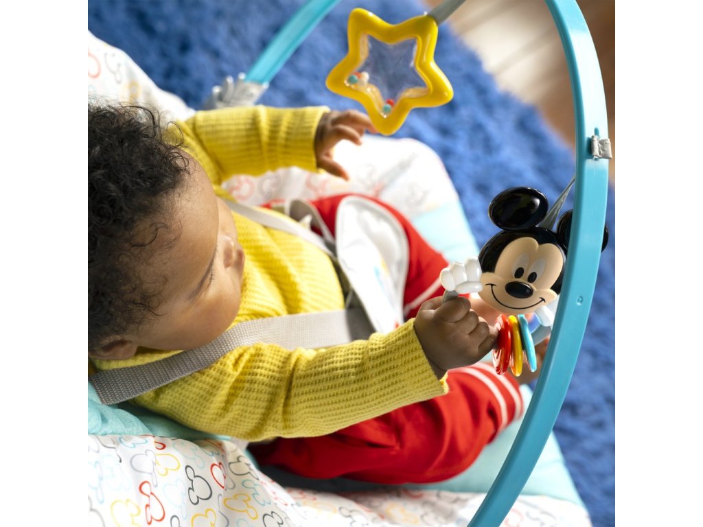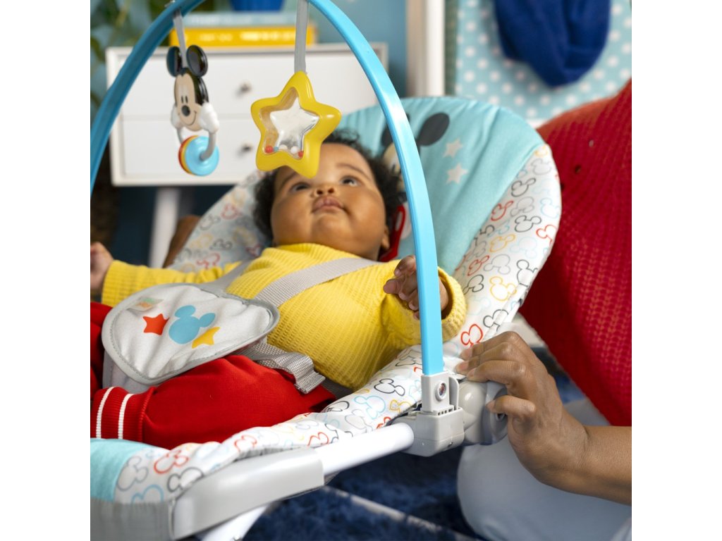 Nekonečnú zábavu pre vaše bábätko prináša húpatko v dizajne Mickey Mouse, ktoré ohúri aj rodičov svojou funkčnosťou a praktickosťou. Toto jedinečné húpatko ponúka funkciu 2v1, nakoľko umožňuje dve nastaviteľné polohy pre maximálne pohodlie vášho dieťatka. Hojdacia poloha je vhodná pre batoľatá, pričom zafixovaním zadného stojana dostanete húpatko do polohy pevného sedadla/kresielka pre staršie detičky.Húpatko má všetky utišujúce funkcie, ktoré vaše dieťatko potrebuje – ako utišujúce vibrácie, hlboké sedadlo a samozrejme zábavu s hračkami, ktoré visia z hrazdičky. Odnímateľná hrazdička ponúka vašim deťom hru s hračkami inšpirovanými Mickey Mouse. Sedacia časť je ľahko umývateľná a môžeme ju vložiť do práčky. Nekĺzavé nožičky a 5bodový bezpečnostný pás udržuje detskú bezpečnosť počas celej doby zábavy vášho bábätka. Húpatko obsahuje zo zadnej strany výsuvné nožičky, ktoré umožňujú stabilizovať húpatko do stojacej polohy.