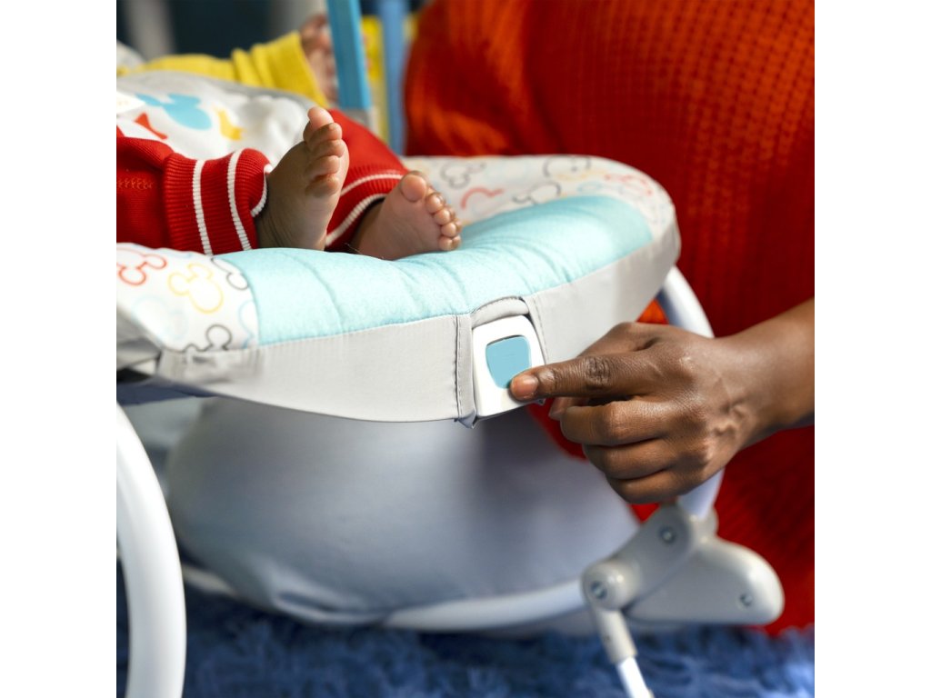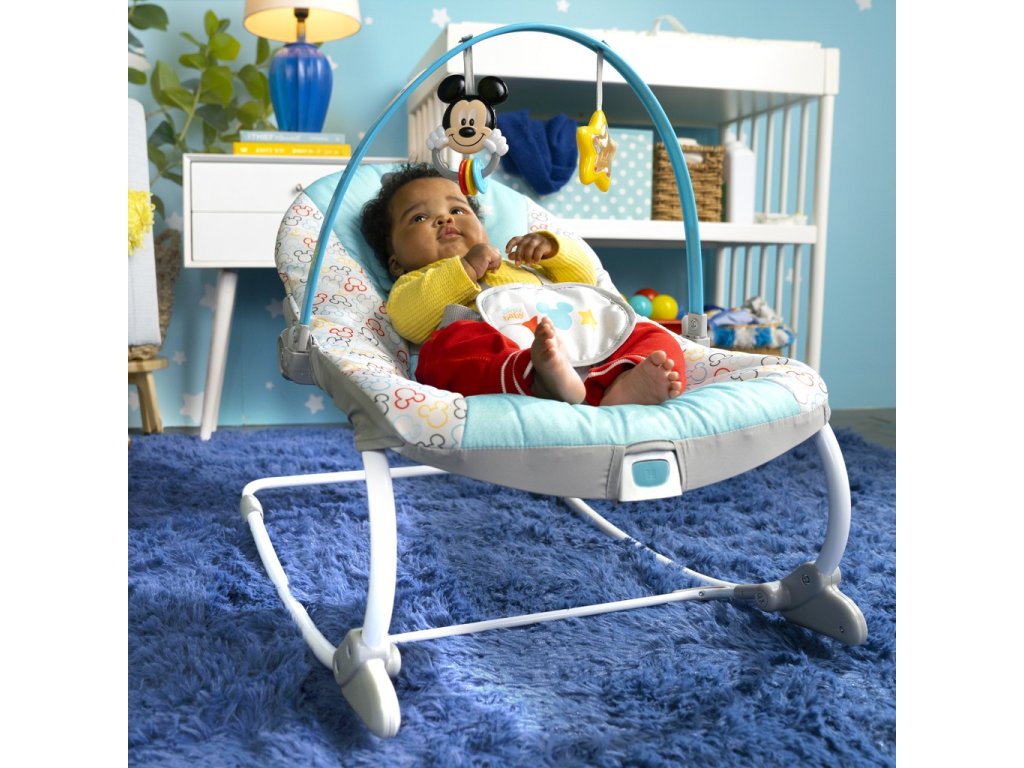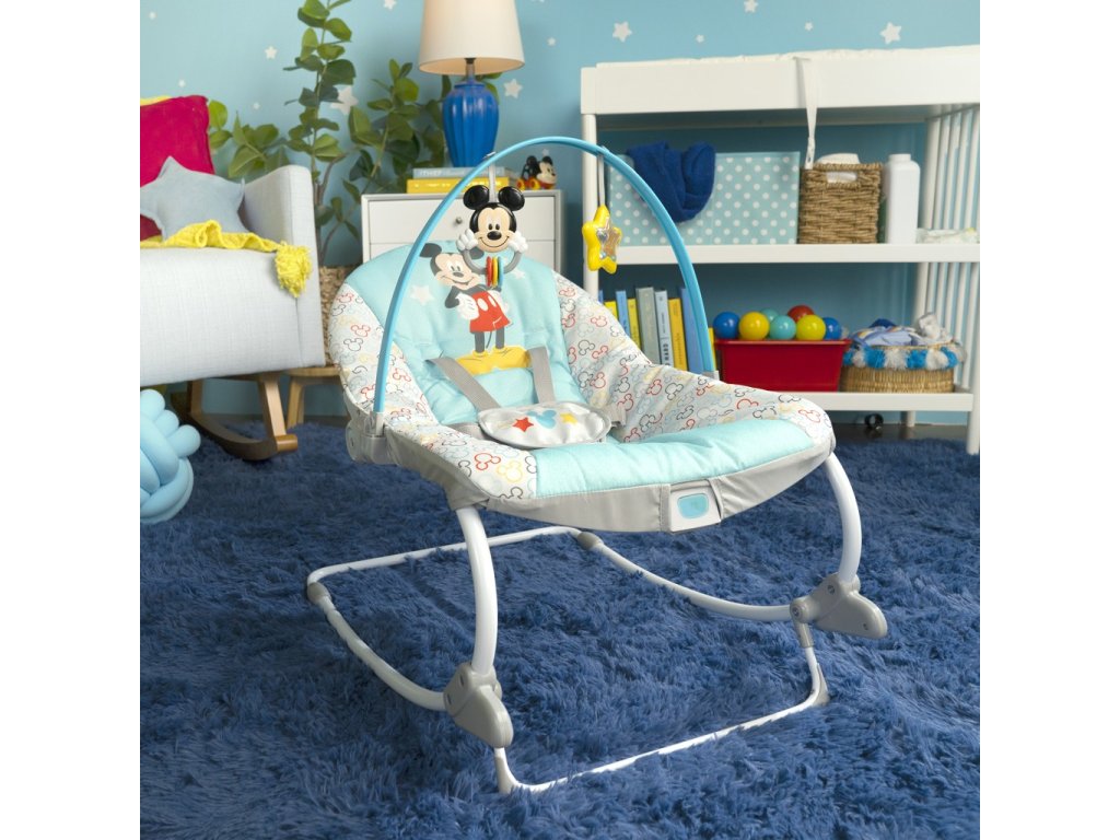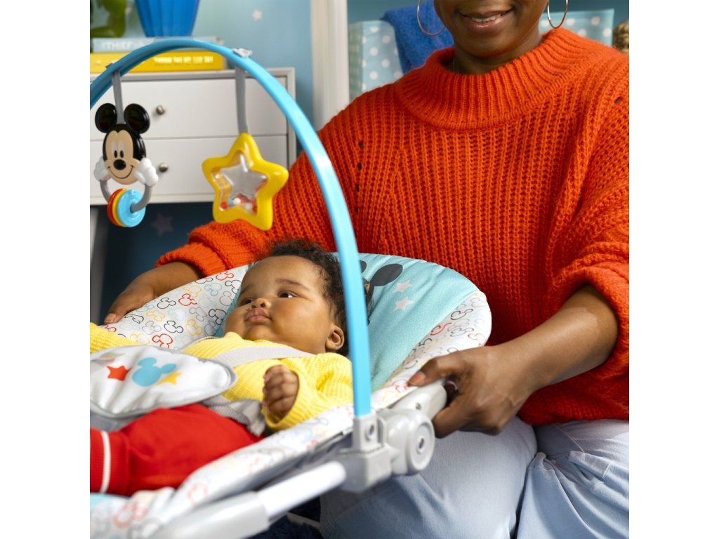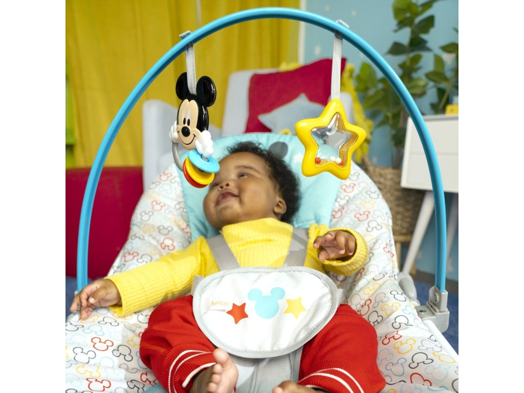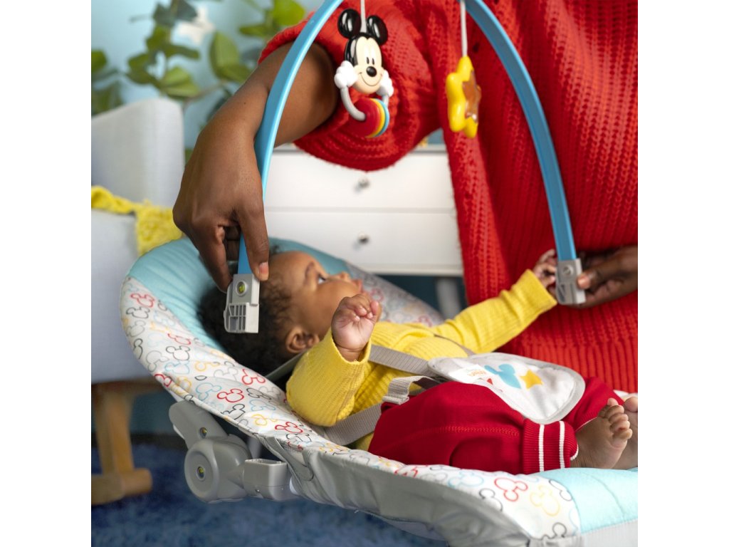Nekonečnú zábavu pre vaše bábätko prináša húpatko v dizajne Mickey Mouse, ktoré ohúri aj rodičov svojou funkčnosťou a praktickosťou. Toto jedinečné húpatko ponúka funkciu 2v1, nakoľko umožňuje dve nastaviteľné polohy pre maximálne pohodlie vášho dieťatka. Hojdacia poloha je vhodná pre batoľatá, pričom zafixovaním zadného stojana dostanete húpatko do polohy pevného sedadla/kresielka pre staršie detičky.Húpatko má všetky utišujúce funkcie, ktoré vaše dieťatko potrebuje – ako utišujúce vibrácie, hlboké sedadlo a samozrejme zábavu s hračkami, ktoré visia z hrazdičky. Odnímateľná hrazdička ponúka vašim deťom hru s hračkami inšpirovanými Mickey Mouse. Sedacia časť je ľahko umývateľná a môžeme ju vložiť do práčky. Nekĺzavé nožičky a 5bodový bezpečnostný pás udržuje detskú bezpečnosť počas celej doby zábavy vášho bábätka. Húpatko obsahuje zo zadnej strany výsuvné nožičky, ktoré umožňujú stabilizovať húpatko do stojacej polohy.