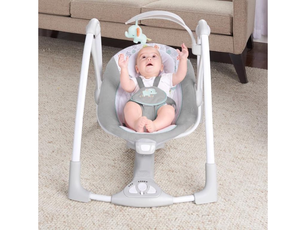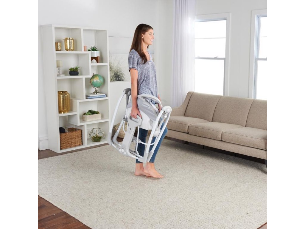 Šikovná hojdačka, ktorá umožňuje nastavenie do dvoch polôh! Hojdačka sa bez námahy premení na stacionárne lehátko a Vy môžete mať počas dňa na pár okamihov voľné ruky. Hojdačka umožňuje nastaviť 5 rôznych rýchlostí, 12 melódií a 4 prírodné zvuky. Na hojdačke je upevnený polohovateľný list s plyšovým kamarátom, ale aj miesta na pripojenie viacerých hračiek. Hojdačka je ideálna pre dievčatká aj chlapcov. Hojdačka sa ľahko skladuje a prepravuje. Časovač hojdačky možno nastaviť na 3 varianty: 30, 45 a 60 minút. S technológiou WhisperQuiet™ dieťatko bude odpočívať spokojne bez rušenia. Hojdačka je vybavená 5- bodovým pásom a protišmykovými nožičkami pre bezpečnosť a ľahko sa udržuje v čistote. Neutrálny dizajn a luxusné funkcie uľahčia deň rodičom a doprajú odpočinok dieťatku. Rovnako si môžete vychutnať dvojité výhody technológie a batérii. Môžete použiť sieťový adaptér v blízkosti zásuvky alebo prepnete hojdačku do režimu batérie.Vlastnosti: