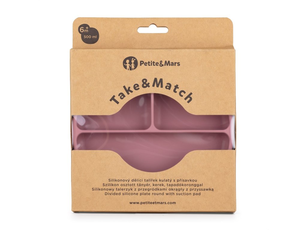 PETITE&MARS Tanierik silikónový deliaci okrúhly Take&Match Dusty Rose 6m+