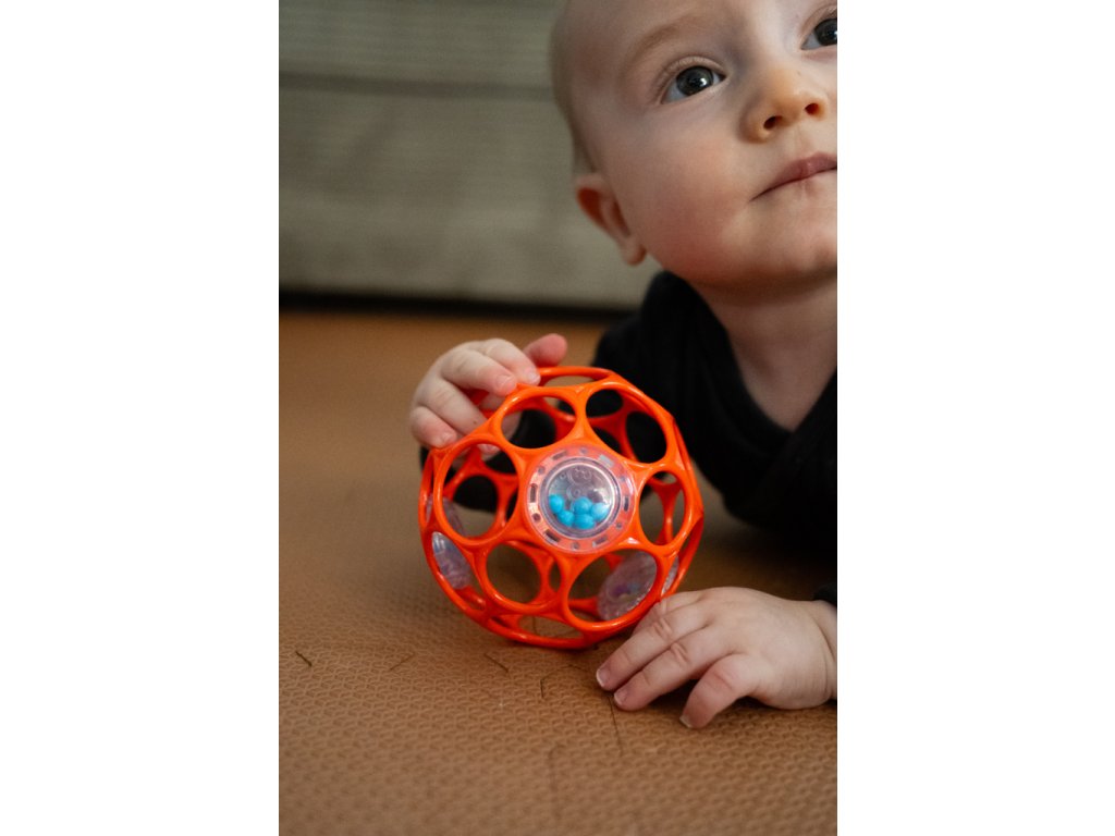 S hrkálkou od Oball vaše dieťatko zažije veľa zábavy pri získavaní prvých zručností. Táto ocenená loptičková hrkálka sa stane obľúbenou hračkou dieťatka. Jednoduchý dizajn od Oball zabezpečuje to najjednoduchšie uchopenie aj pre tie najmenšie rúčky, z čoho bude mať vaše dieťatko radosť. Loptička má 29 dierok, ktoré práve umožnia dieťatku jednoduché uchopenie. Je vyrobená z ľahkého materiálu, preto nebude ťažká pre drobné rúčky. V loptičke sa nachádzajú tri hrkálky vyplnené farebnými korálikmi, ktoré vydávajú zábavné zvuky už pri najmenšom zatrasení. Tieto zvuky neustále povzbudzujú dieťatko, aby loptičku držalo v rukách a triaslo s ňou.Vlastnosti: