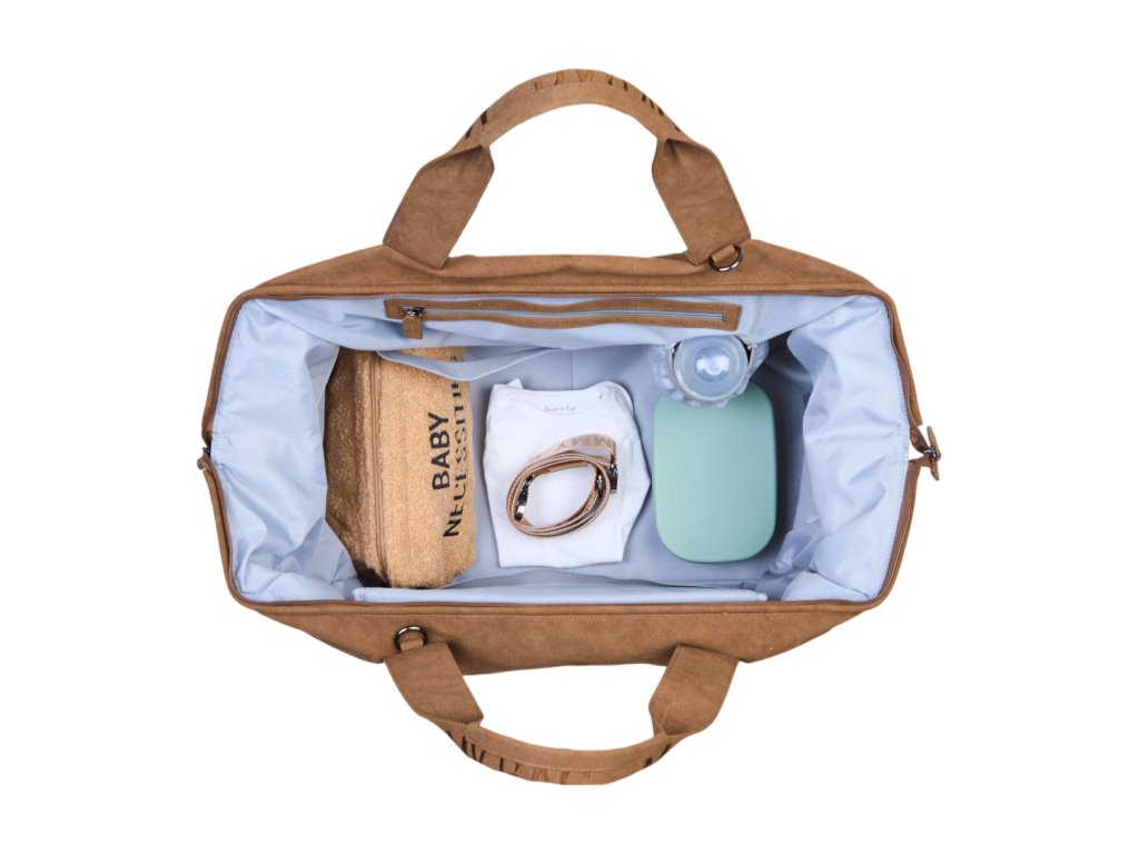 Neuveriteľne priestranná prebaľovacia taška, ktorú využijete pri každodenných aktivitách s vašim bábätkom, ale zvládnete do nej zbaliť aj všetko potrebné pre bábätko na rodinný víkend mimo domova. Široký prístup zhora a vrecká vo vnútri tašky sú zárukou, že vždy rýchlo nájdete všetko, čo práve potrebujete. Súčasťou tašky je farebne zladená prebaľovacia podložka. Taška s uzatváraním na zips je vybavená držadlami na nosenie v ruke aj popruhom na nosenie cez rameno, úchyt na vyťahovaciu rukoväť kufra vám uľahčí cestovanie počas dovolenky. Taška je vyrobená z príjemnej umelej kože semišového vzhľadu s podšívkou. Vďaka kvalitnému materiálu ju stačí pri znečistení utrieť vlhkou handričkou. Zloženie: 100% PU koža Rozmery: 55 x 30 x 40 cm Objem: 58 l Nosnosť: 5 kgDodatočné parametre