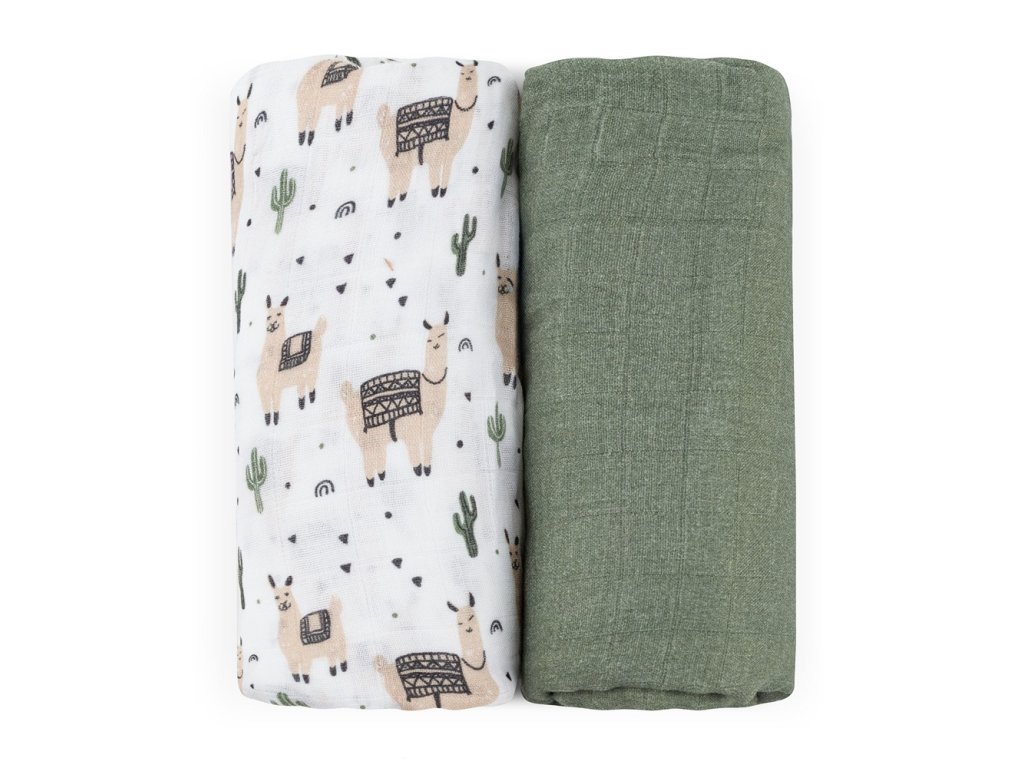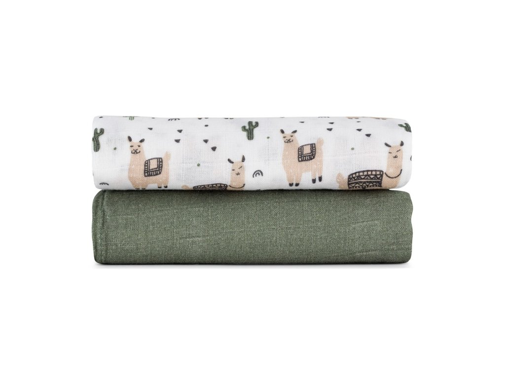 PETITE&MARS Prikrývka bambusová mušelínová 2ks Misty Llama Vibes 120 x 120 cm