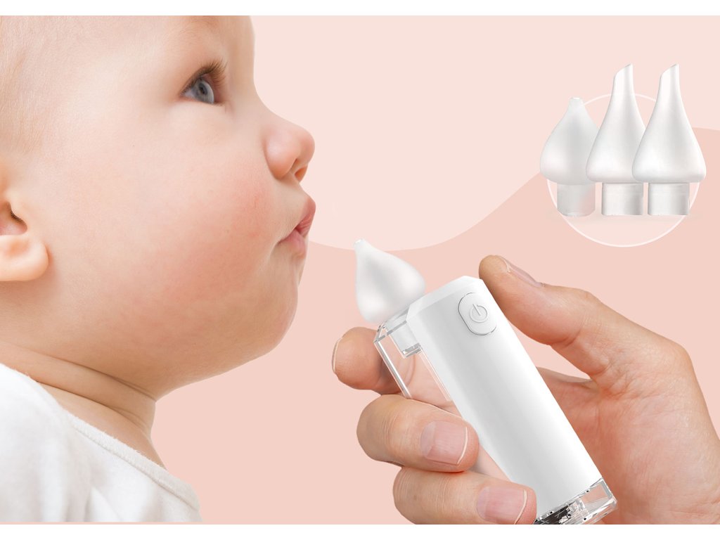- Tri ergonomické silikónové nástavce – mäkké, bezpečné a tvarované podľa vývoja detského nosa