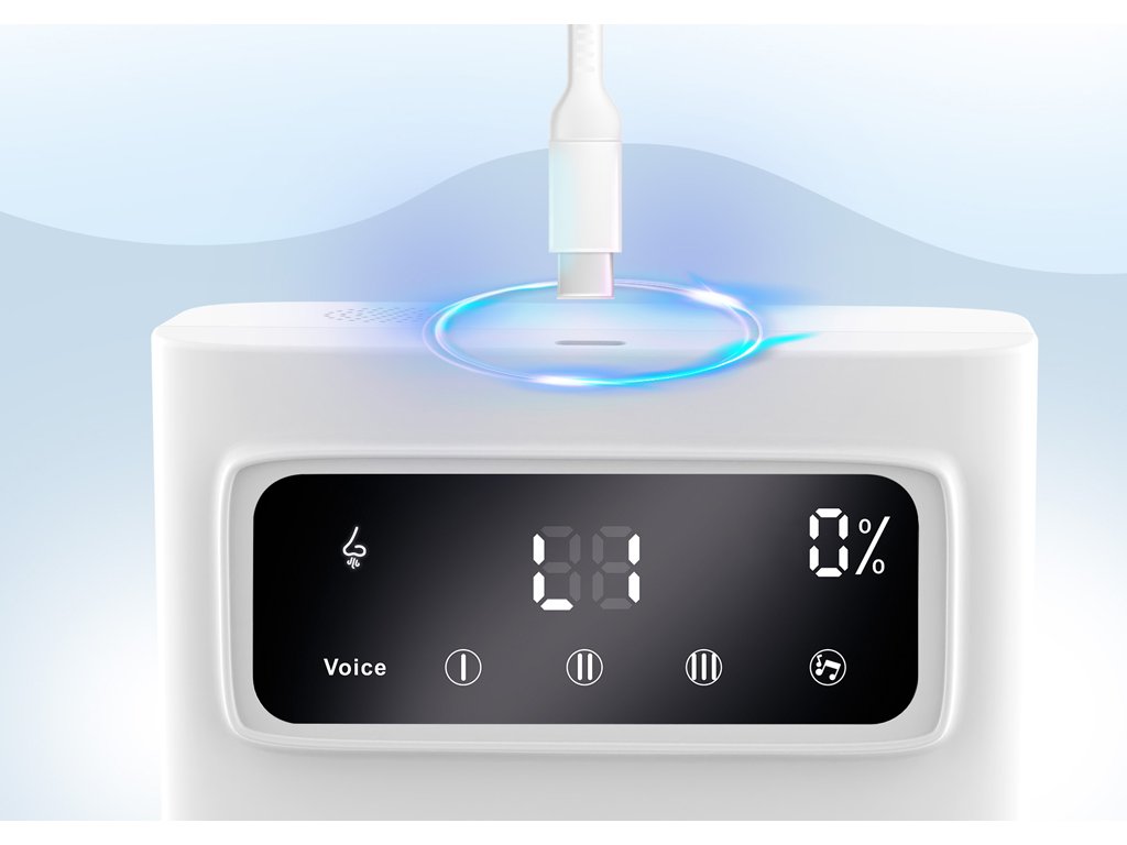 - Upokojujúce zvuky – dve melódie a biely šum pre vytvorenie pokojnej atmosféry počas odsávania