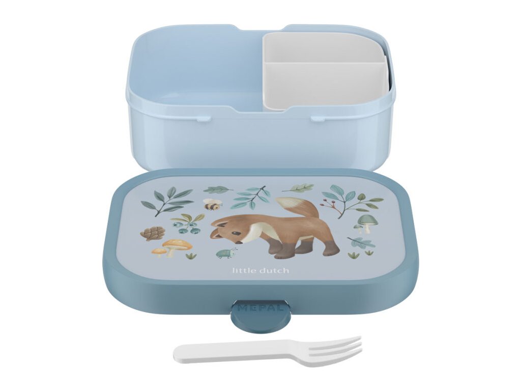 Praktický desiatový box ponúka možnosť rozdelenia na tri priehradky na oddelenie jednotlivých častí uloženej desiaty. Súčasťou boxu je aj malá vidlička, ktorá je ideálna na napichovanie kúskov ovocia či zeleniny. Zacvakávací uzáver je zárukou bezpečného uzavretia obsahu boxu. Box je súčasťou dizajnového radu hračiek a doplnkov Little Dutch Forest Friends, inšpirovaných životom v lese. Materiál: PP, ABS Rozmery: 17,8 x 13,2 x 6 cm Objem: 750 ml Vhodné do umývačky.Dodatočné parametre