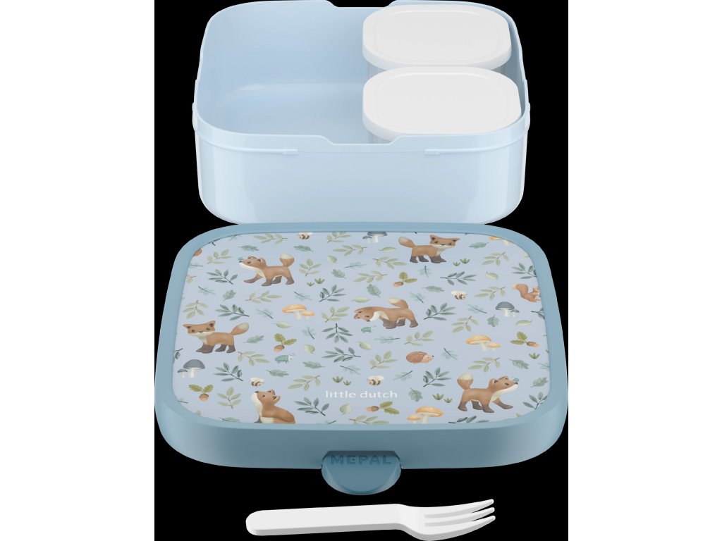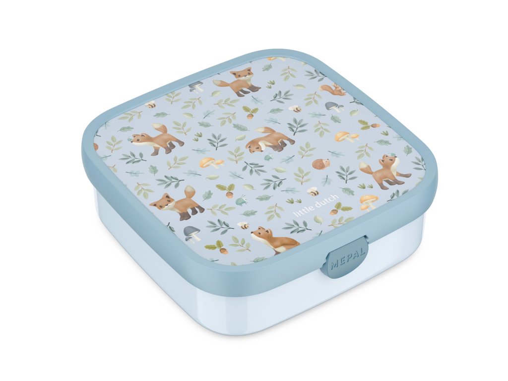 Veľký desiatový box má vo vnútri dve vyberateľné krabičky s viečkom na oddelenie jednotlivých častí uloženej desiaty. Súčasťou boxu je aj malá vidlička, ktorá je ideálna na napichovanie kúskov ovocia či zeleniny. Zacvakávací uzáver je zárukou bezpečného uzavretia obsahu boxu. Box je súčasťou dizajnového radu hračiek a doplnkov Little Dutch Forest Friends, inšpirovaných životom v lese. Materiál: PP, PE Rozmery: 18,4 x 18,2 x 6,5 cm Objem: 1300 ml Vhodné do umývačky a na ohrievanie v mikrovlnke (bez viečka).Dodatočné parametre
