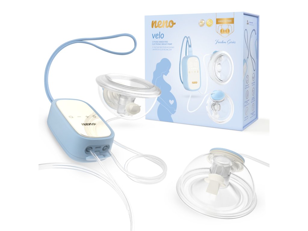 Neno Velo je inovatívna bezdrôtová handsfree odsávačka materského mlieka vďaka ktorej toho zvládnete naozaj veľa. Neno Velo je produkt, ktorý je odpoveďou na potreby matky, ktoré oceňujú pohodlné a praktické riešenia. Handsfree odsávačka mlieka pozostáva zo sady zberných pohárikov pripojených k odsávačke. Efektívne odsávanie mlieka je možné vďaka jeho trojfázovému pôsobeniu (s 8 úrovňami regulácie) a prsným štítkom, ktorých veľkosť môže byť od 24 mm do 20 mm. Šnúrky dodávané v rôznych dĺžkach umožňujú zavesiť odsávačku okolo krku alebo pripnúť na opasok nohavíc pre neoceniteľné pohodlie pri odsávaní.Obsah balenia: