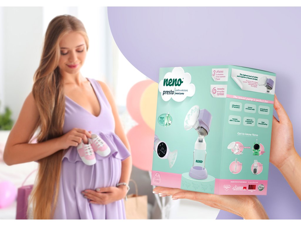 Neno Presto je elektrická odsávačka mlieka s 3 fázami a 9 úrovňami odsávania. Je to perfektný pomocník pre dojčiace ženy po prirodzenom pôrode alebo aj cisárskom reze.Inteligentná a inovatívna 3-fázová odsávačka je podpora v prípade problémov s laktáciou, t.j. stagnácie laktácie, nízkej produkcie mlieka alebo pri oneskorení materského mlieka po cisárskom reze.