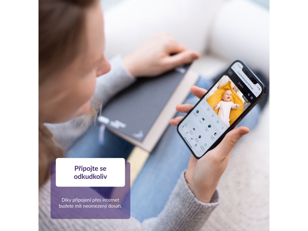 Pri zachytení pohybu, zvuku alebo nežiaducej teploty vám pestúnka odošle oznámenie do mobilného telefónu.
