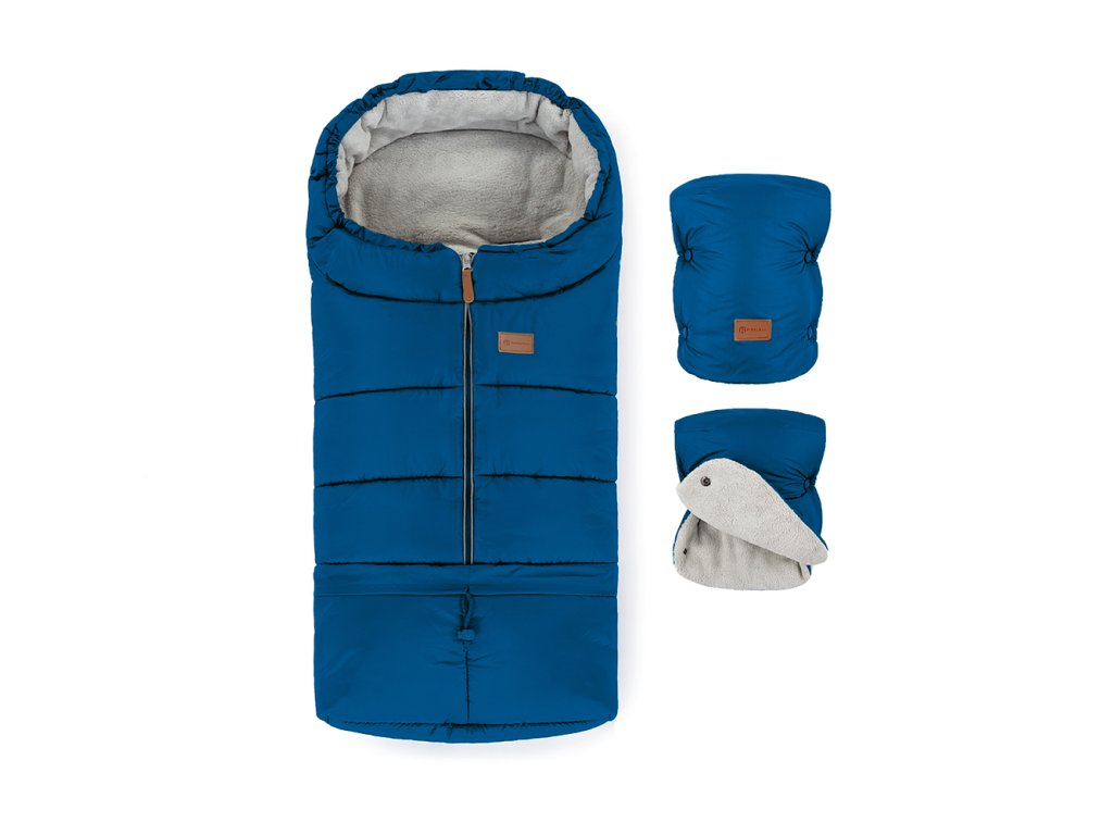 PETITE&MARS Set zimný fusak Jibot 3v1 + rukavice na kočík Jasie Ocean Blue Horizontal