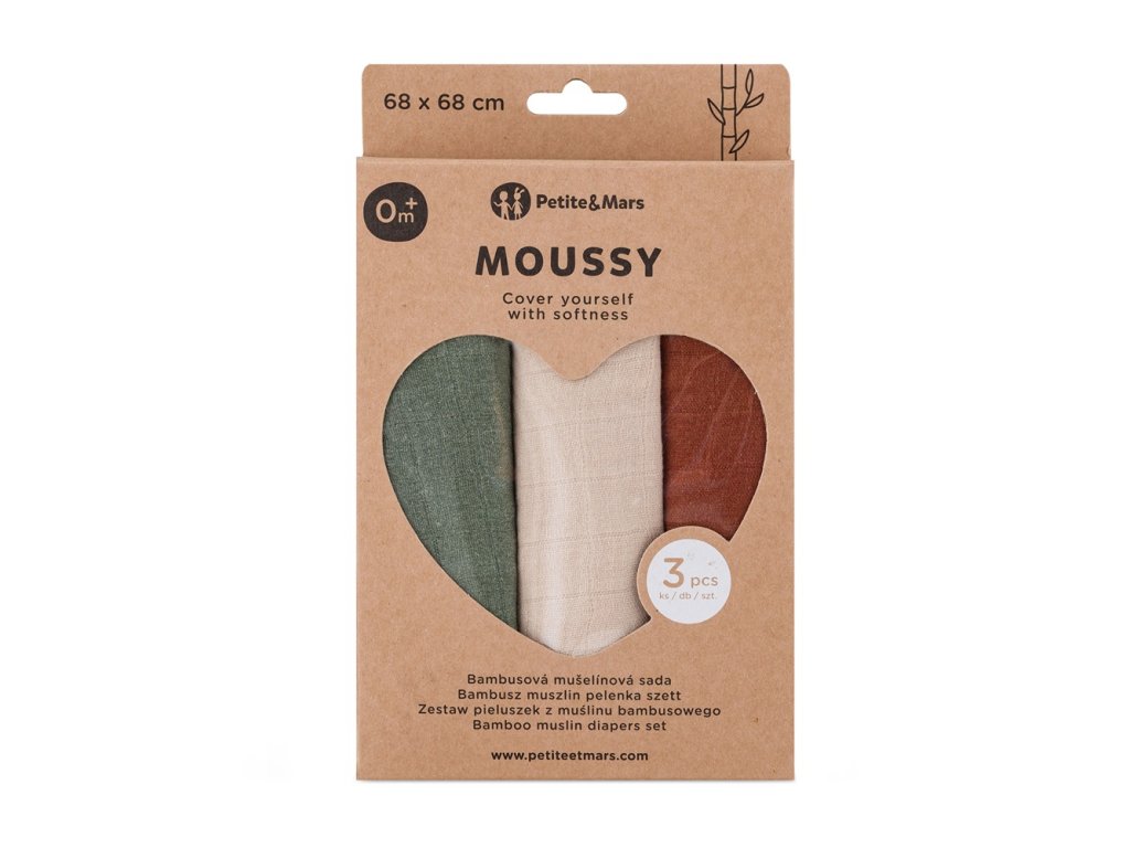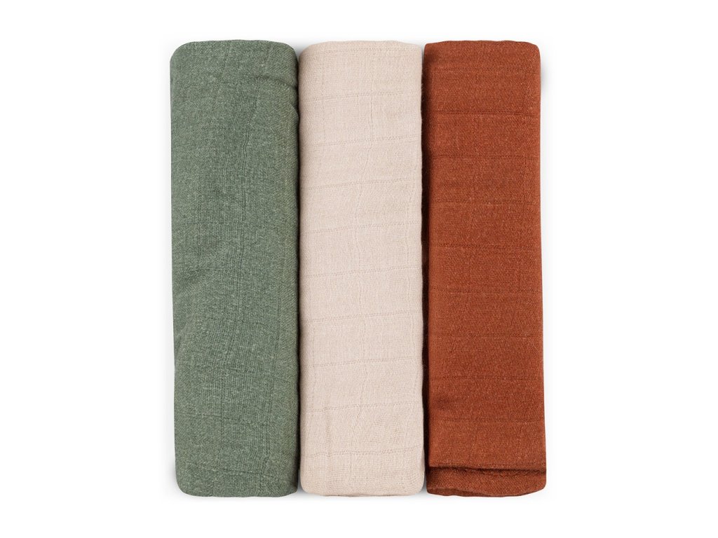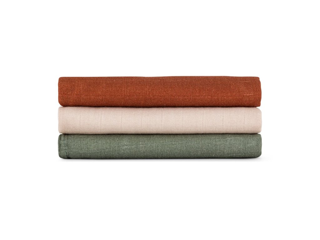 PETITE & MARS Sada plienok bambusová mušelínová 3ks Moussy Earth Tones 68 x 68 cm