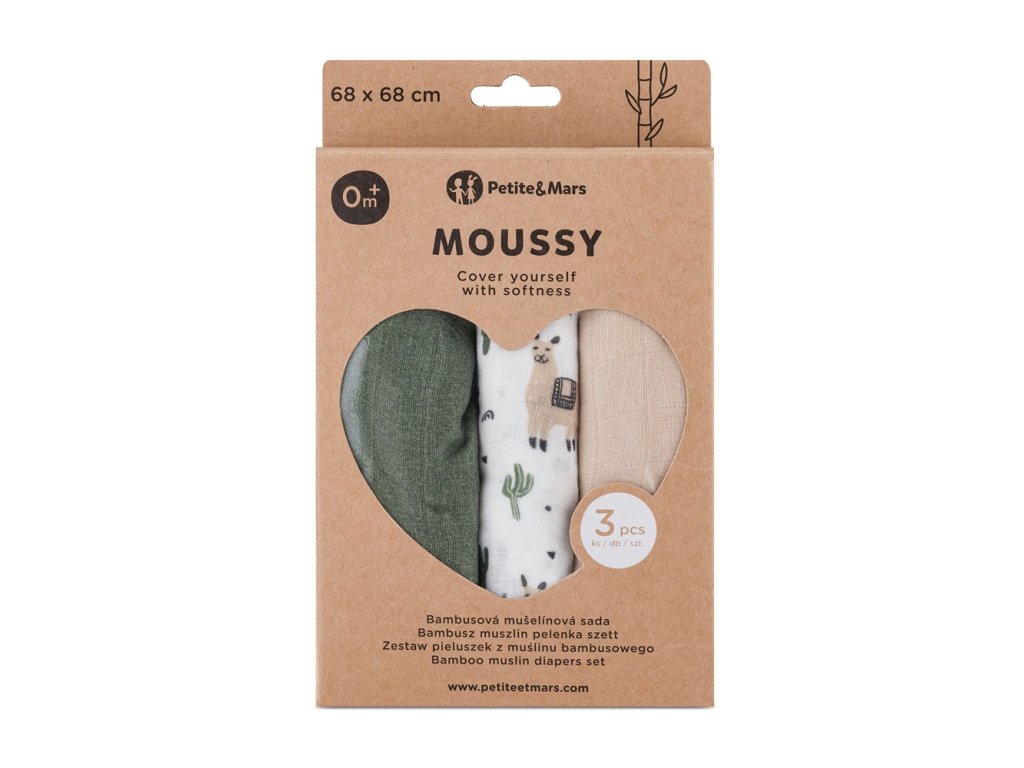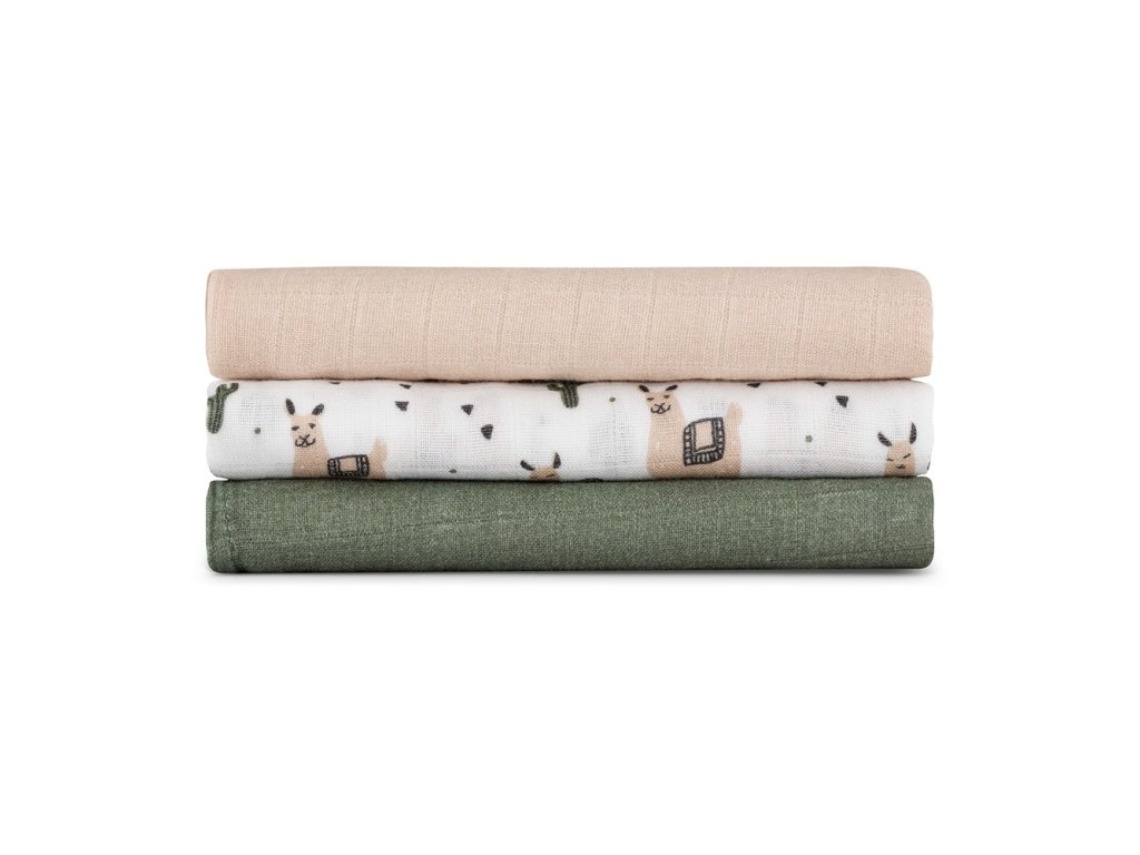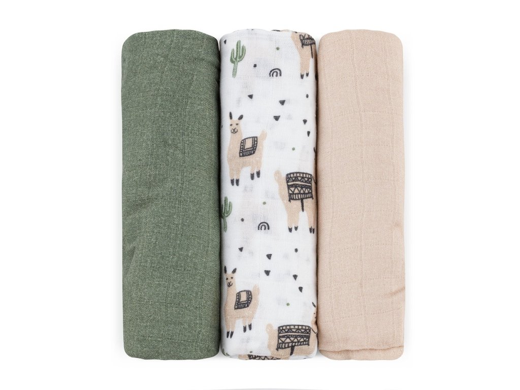 PETITE & MARS Sada plienok bambusová mušelínová 3ks Moussy Llama Vibes 68 x 68 cm