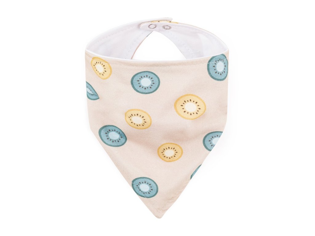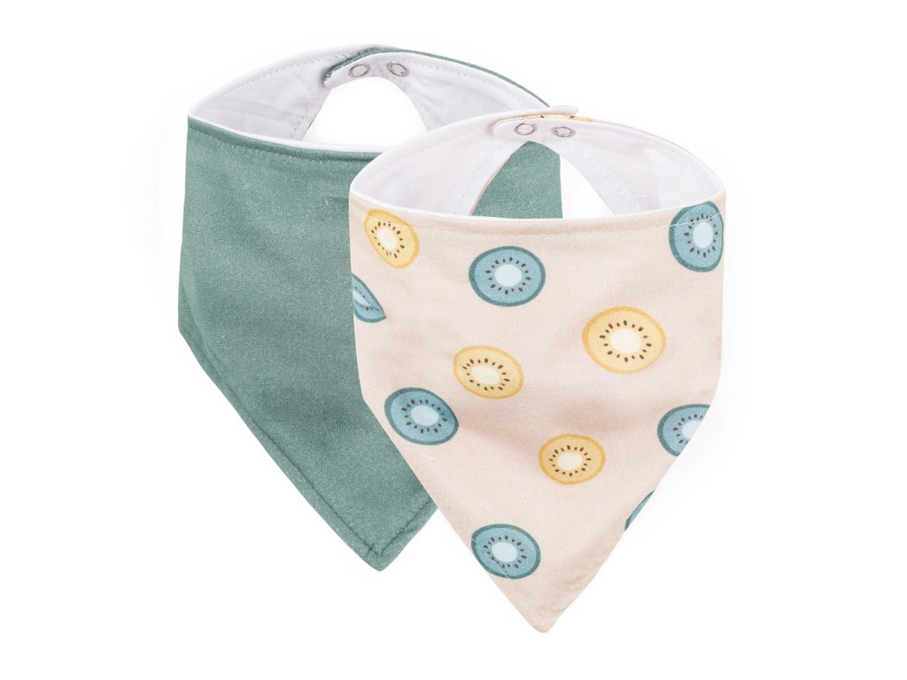 Súprava obsahuje dva podbradníky – jeden v jednofarebnom prevedení a druhý so štýlovým vzorom, čo umožňuje ľahké zladenie s akýmkoľvek outfitom. Praktické zapínanie na cvoček s nastaviteľnou veľkosťou zabezpečuje dokonalé prispôsobenie okolo krku dieťatka.