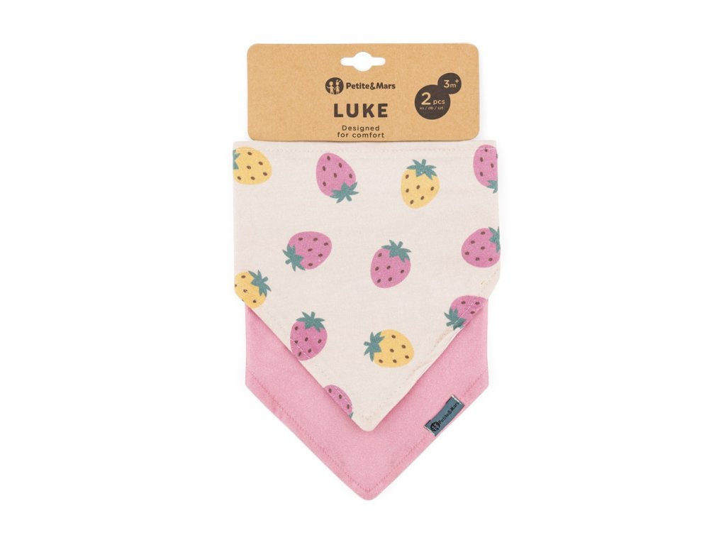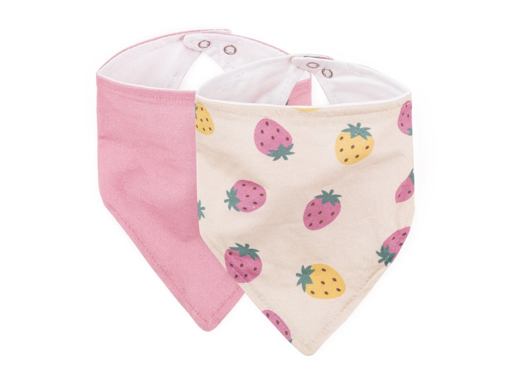 PETITE&MARS Podbradník bandana Luke 2 ks Beige Strawberies&Dusty Rose 3m+