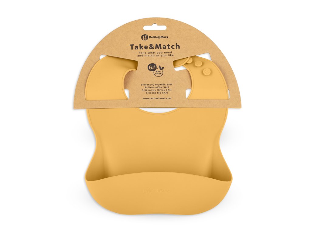 PETITE&MARS Podbradník silikónový Take&Match Intense Ochre 6m+