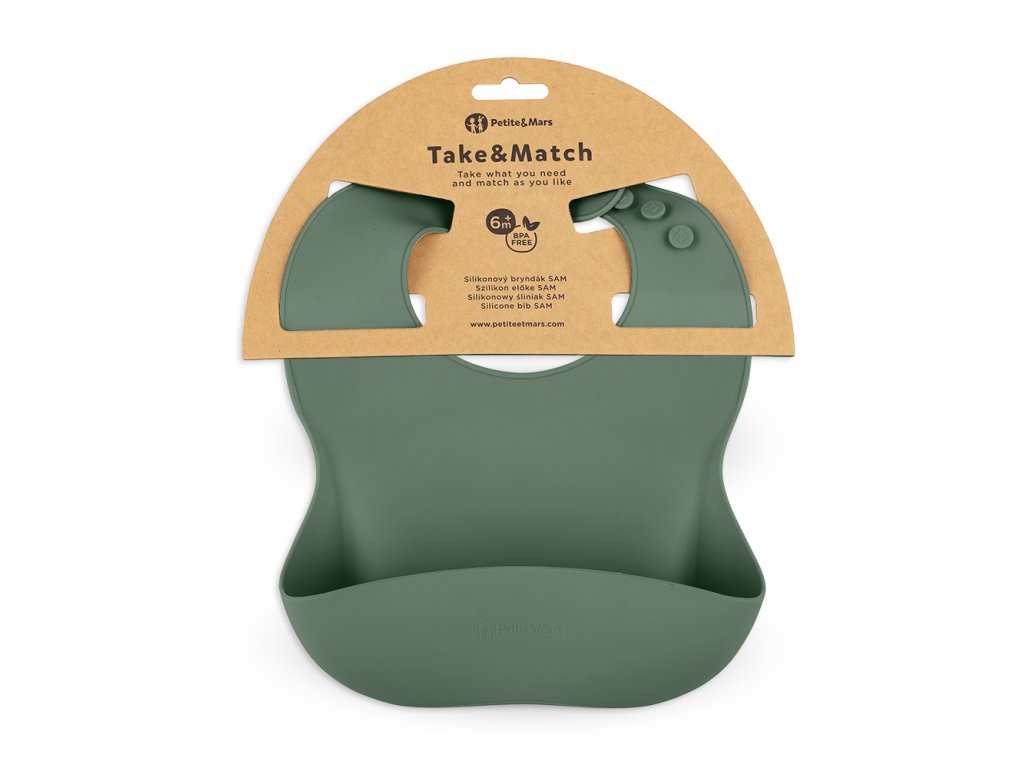 PETITE&MARS Podbradník silikónový Take&Match Misty Green 6m+