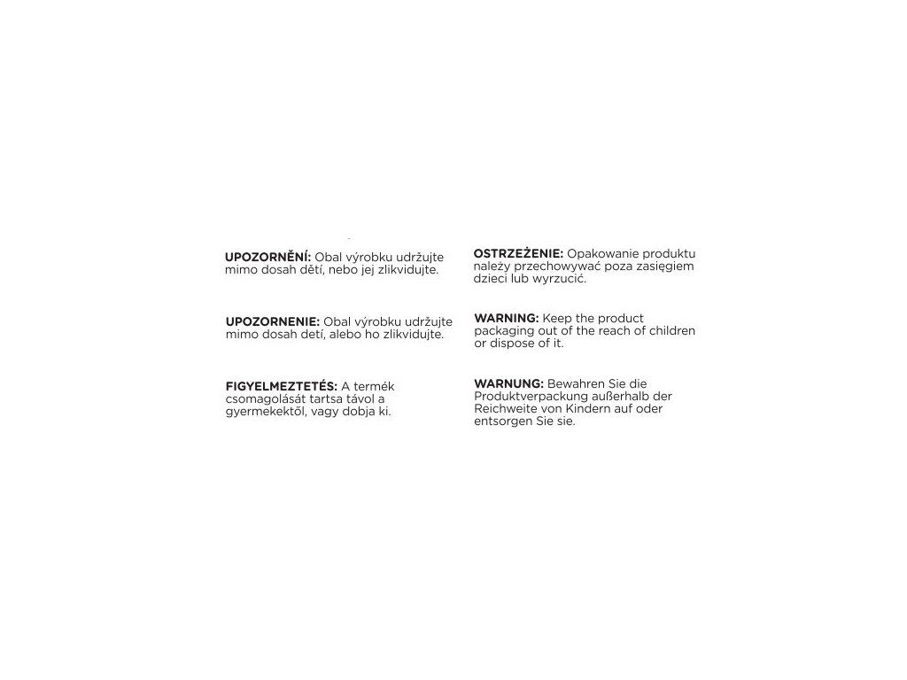 UPOZORNENIE! Obal výrobku udržujte mimo dosahu detí, alebo ho zlikvidujte.