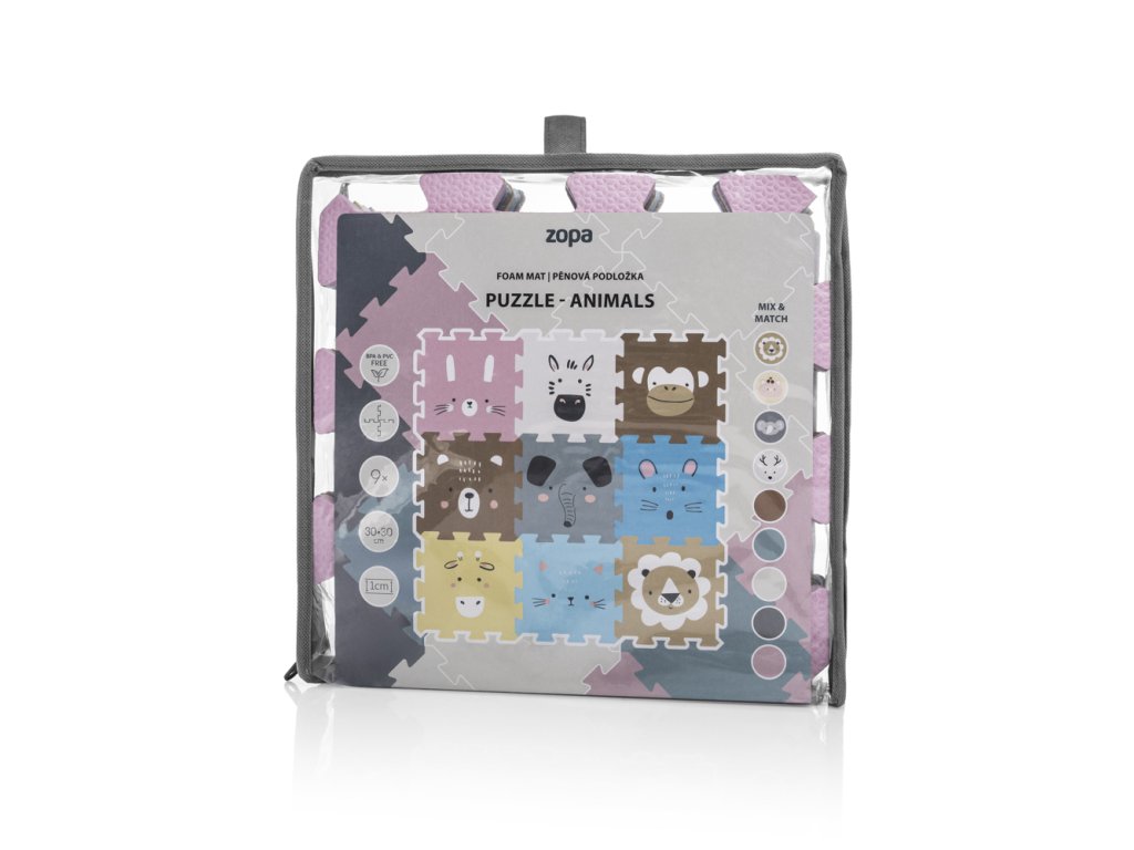 Penové puzzle je vyrobené z kvalitnej EVA peny. Slúži nielen ako podložka, ktorá zabezpečí pohodlie vďaka izolácii od chladu, ale aj ako praktická pomôcka pre prvé mesiace bábätka, keď poskytuje mäkkú oporu pri pásení koníčka alebo pri prvom lození.