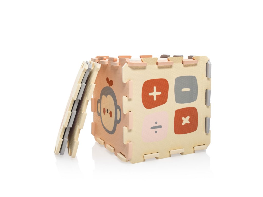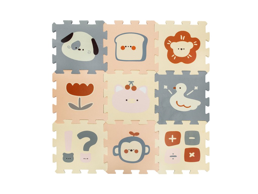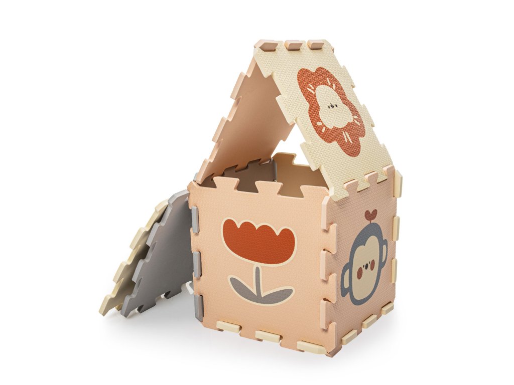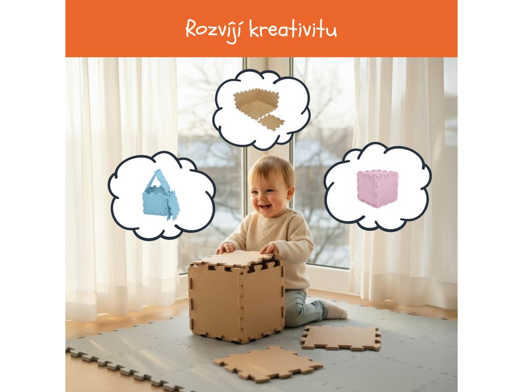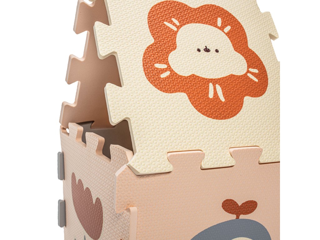 Jednotlivé dlaždice 30 × 30 cm (9 ks) do seba perfektne zapadajú. Podložka je vhodná pre deti od narodenia, vyrobená z nezávadného a príjemného materiálu.