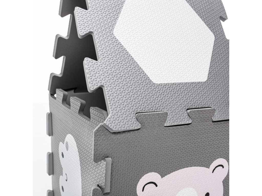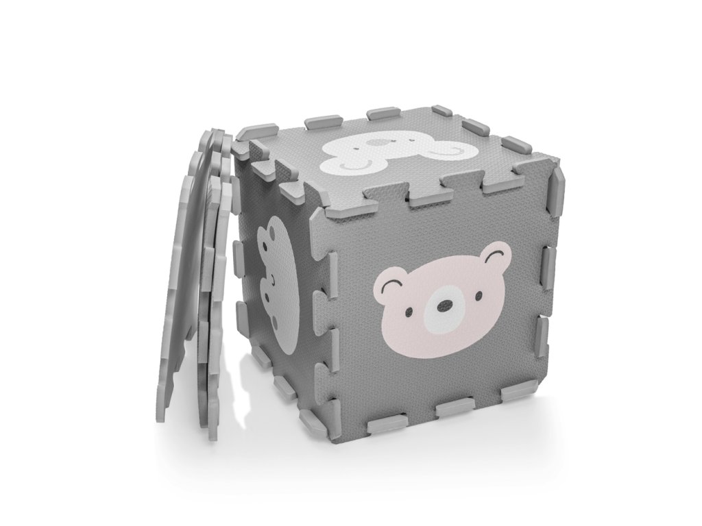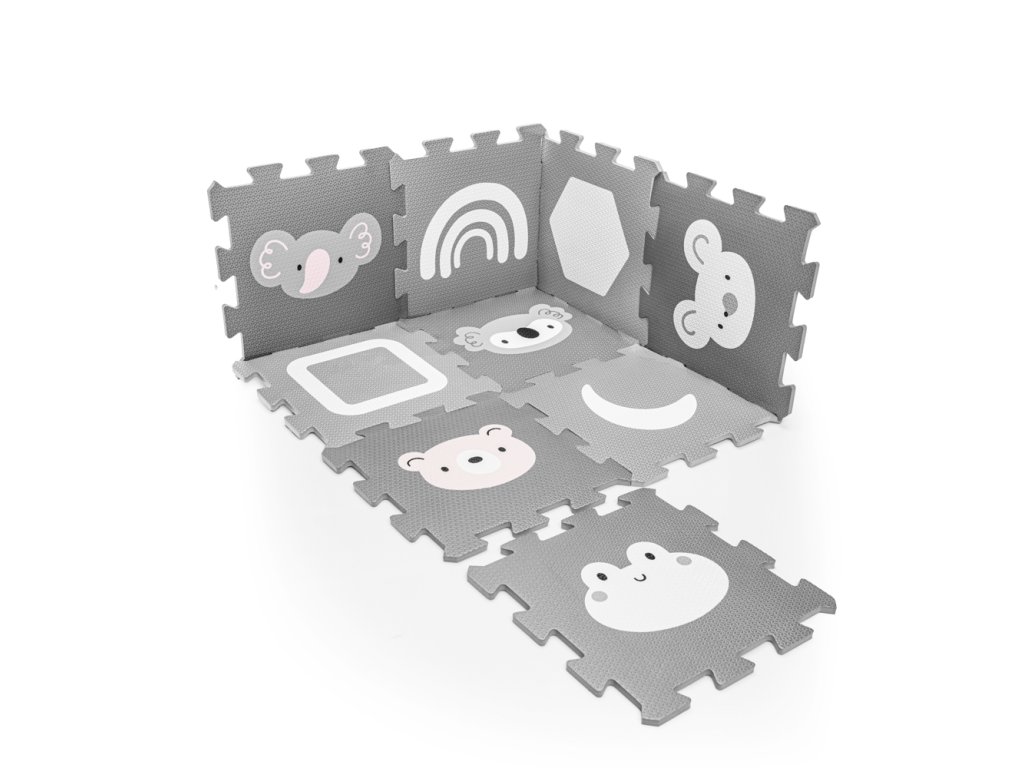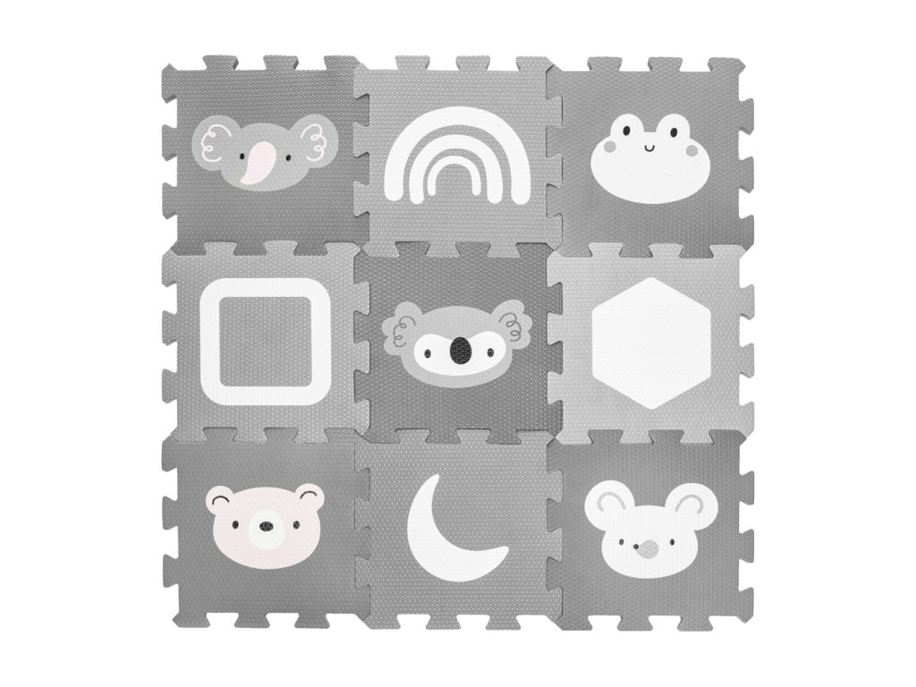 Jednotlivé dlaždice 30 × 30 cm (9 ks) do seba perfektne zapadajú. Podložka je vhodná pre deti od narodenia, vyrobená z nezávadného a príjemného materiálu.
