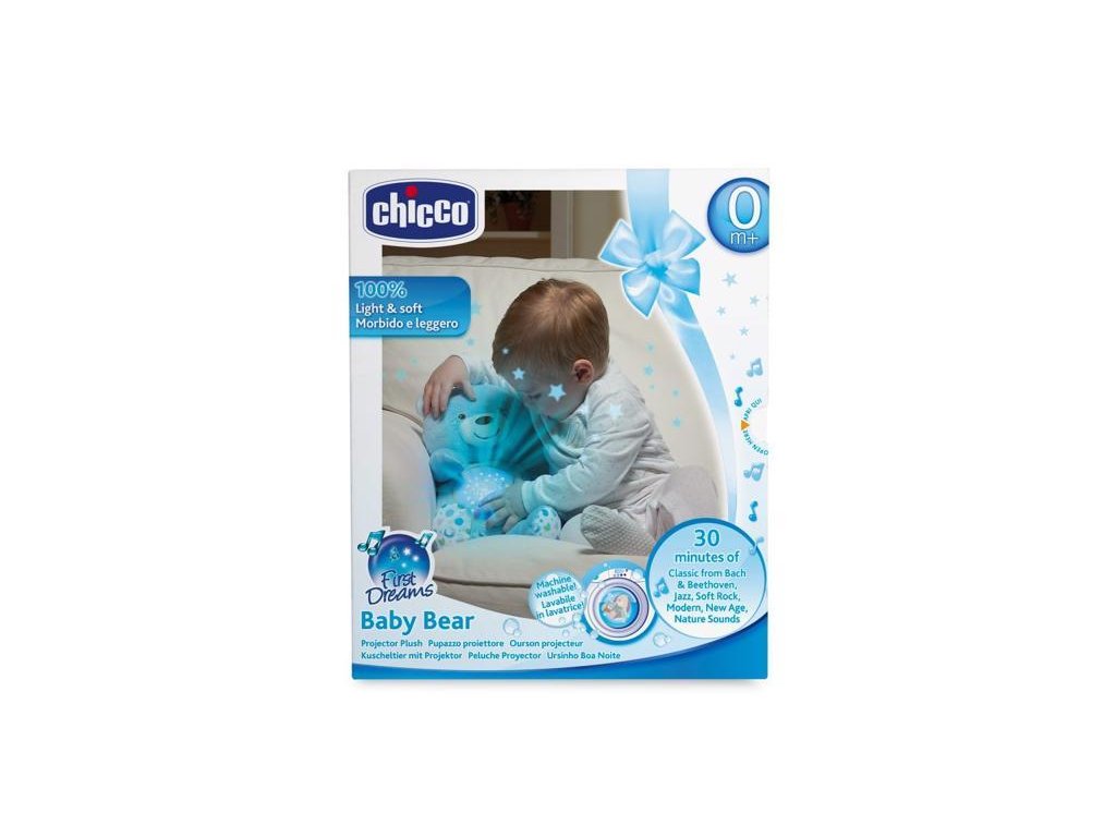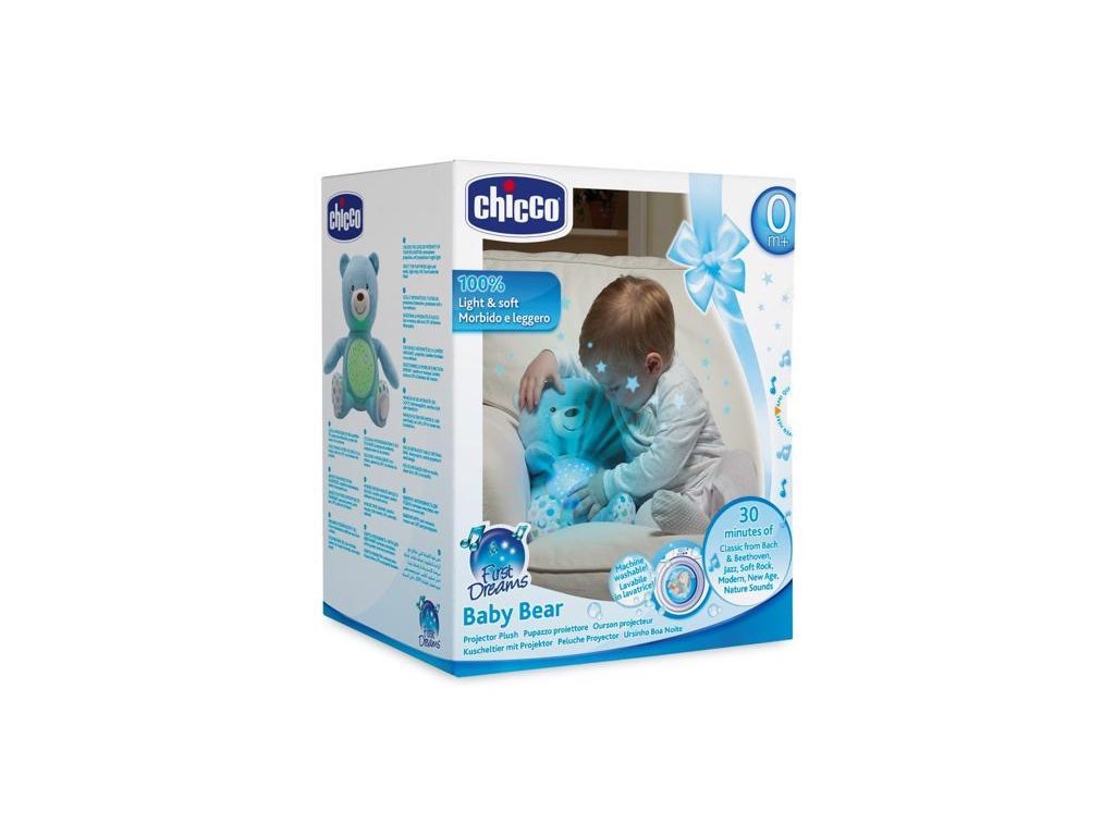 CHICCO Medvedík uspávačik s projektorom a hudbou Baby Bear First Dreams - modrá 0m+