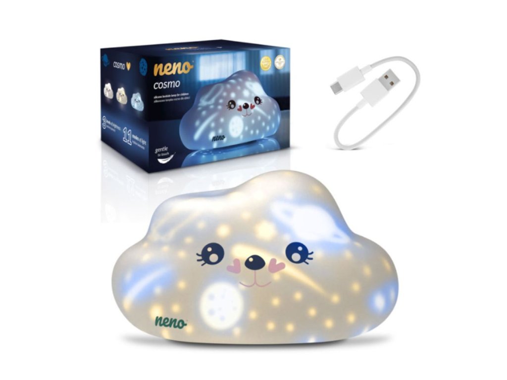 Neno Cosmo je jemná LED nočná lampa v tvare oblaku, ktorá rozžiari detskú izbu nielen teplým svetlom, ale aj dávkou kozmickej fantázie! Na povrchu lampy sa objavujú farebné planéty, rakety a hviezdy, ktoré vytvárajú pokojné a inšpirujúce prostredie pre spánok. Vyrobená z bezpečného silikónu, s jednoduchým ovládaním jedným tlačidlom a nabíjaním cez USB-C, je Neno Cosmo ideálna doma aj na cestách.Vlastnosti: