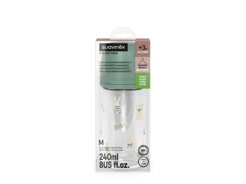 SUAVINEX | Fľaša sklo WONDERLAND NEW 240 ml fyziologická SX PRO +3 MF - zelený králik