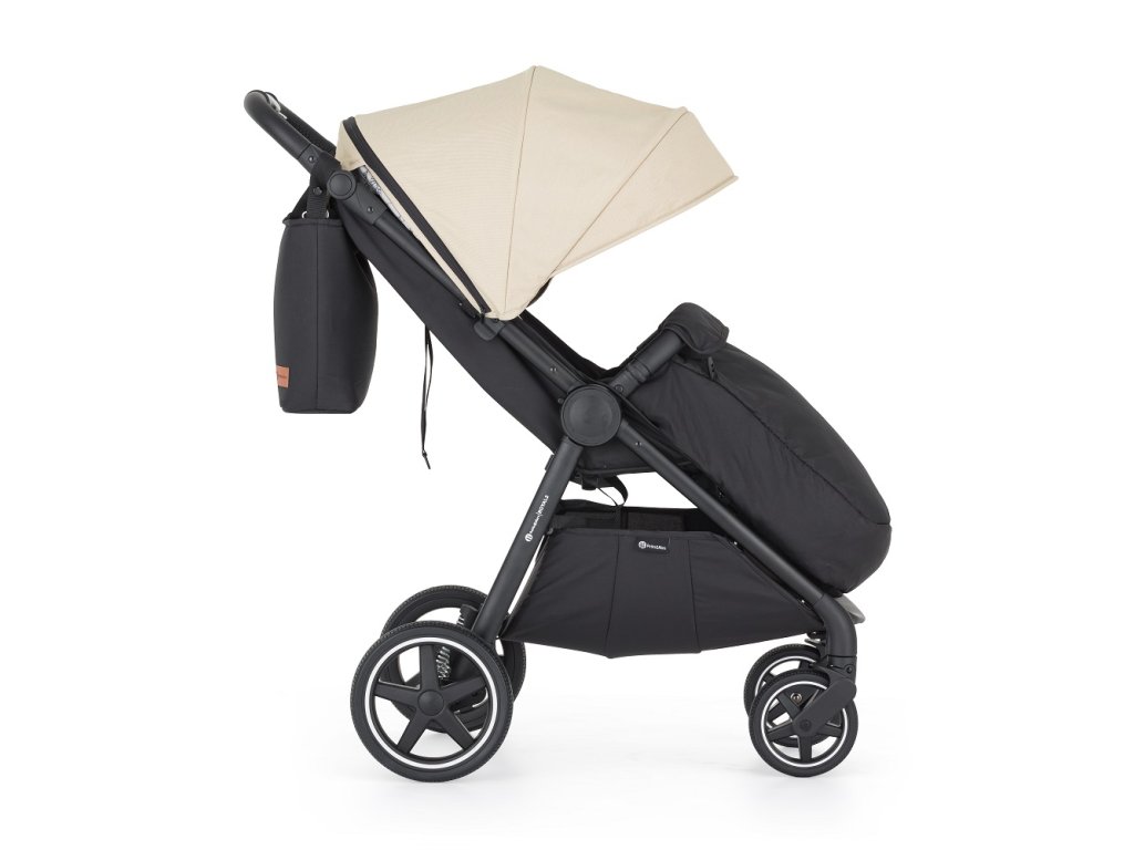 Dieťatko ocení pohodlie a dostatočný priestor a vďaka vylepšenej sieťovanej opierke chrbta a extra dlhej strieške si vychutná komfortný spánok aj počas horúceho leta. Maminke pri usádzaní dieťatka pomôže otočné madlo a nová magnetická pracka.