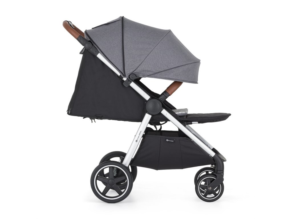 - Konštrukciu kočíka v striebornej farbe s madlom a rukoväťou v hnedej eko-koži