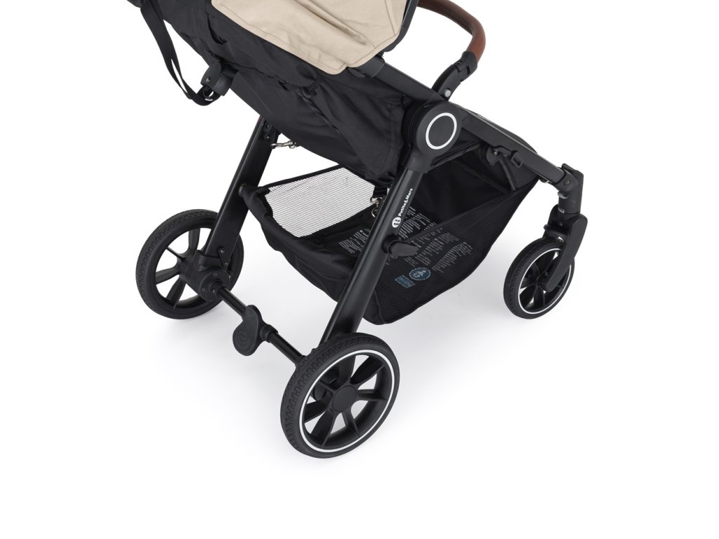 Športový kočík Street2 RWS Oak je vďaka menším kolieskam ľahší, celogumené kolieska majú ale napriek tomu výborné jazdné vlastnosti. Madlo a rukoväť sú v krásnej hnedej farbe.