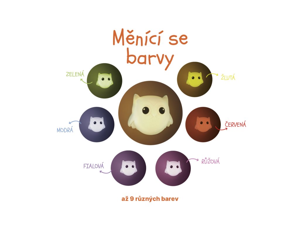 Príjemné nočné svetlo s možnosťou výberu z 3 režimov a až 9 farieb