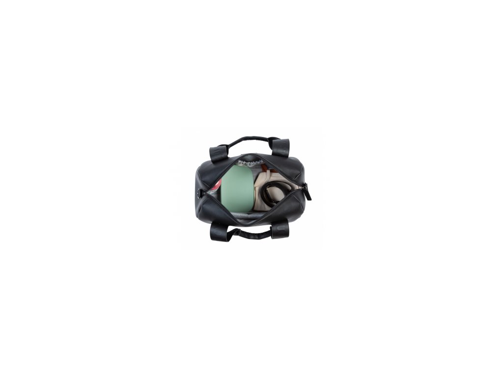 Prebaľovacia taška s uzatváraním na zips je vybavená držadlami na nosenie v ruke, popruhom na nosenie cez rameno aj úchyty na zavesenie na kočík.