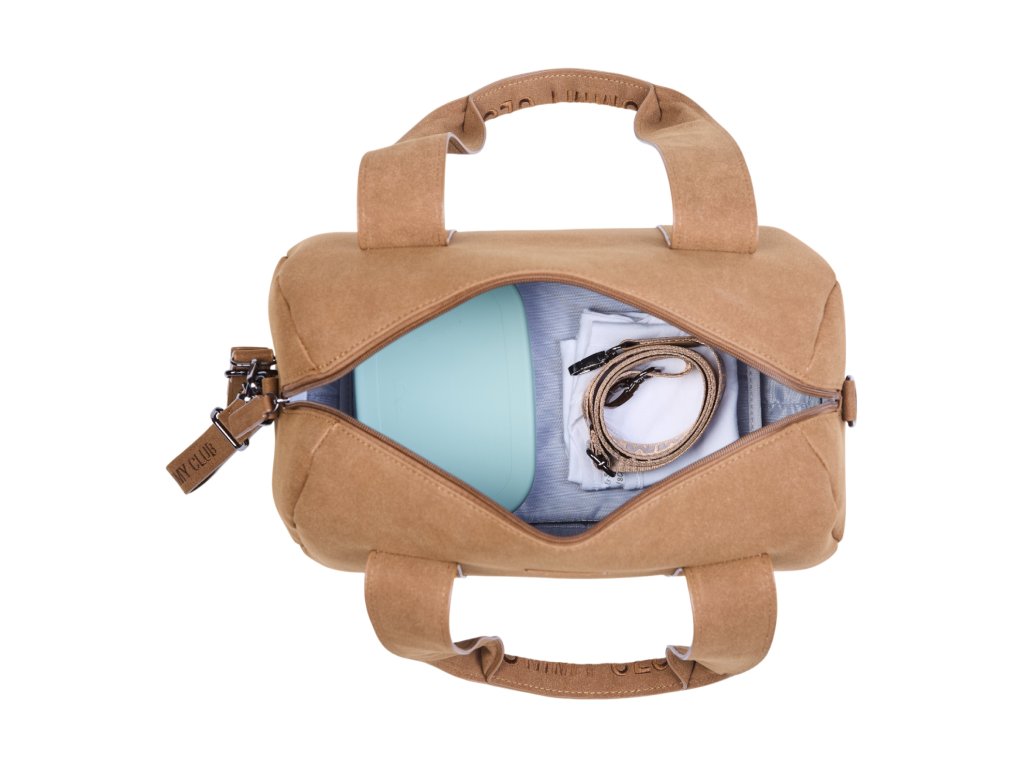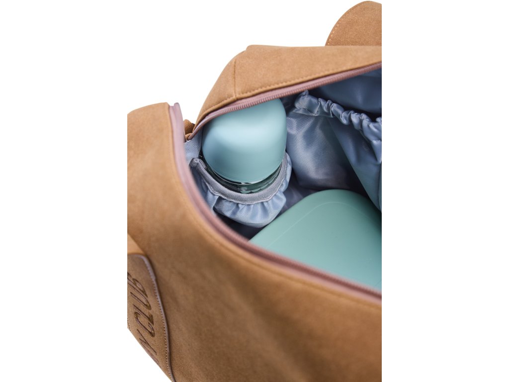 Štýlová prebaľovacia taška Childhome Mommy Club je perfektná pre jednoduché a prehľadné uloženie všetkého potrebného na prechádzky a výlety s bábätkom. Vnútorné usporiadanie ponúka termoizolačné vrecko na fľašu a elastické vrecká na uloženie vlhčených obrúskov, plienok, náhradného oblečenia a pod. Súčasťou je aj prebaľovacia podložka. Prebaľovacia taška s uzatváraním na zips je vybavená držadlami na nosenie v ruke, popruhom na nosenie cez rameno aj úchyty na zavesenie na kočík. Taška je vyrobená z príjemnej umelej kože semišového vzhľadu s podšívkou. Vďaka kvalitnému materiálu ju stačí pri znečistení utrieť vlhkou handričkou. Zloženie: 100% PU koža Rozmery: 38 x 27 x 21 cm Objem: 22 l Nosnosť: 2 kgDodatočné parametre