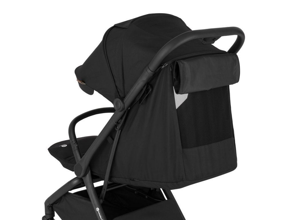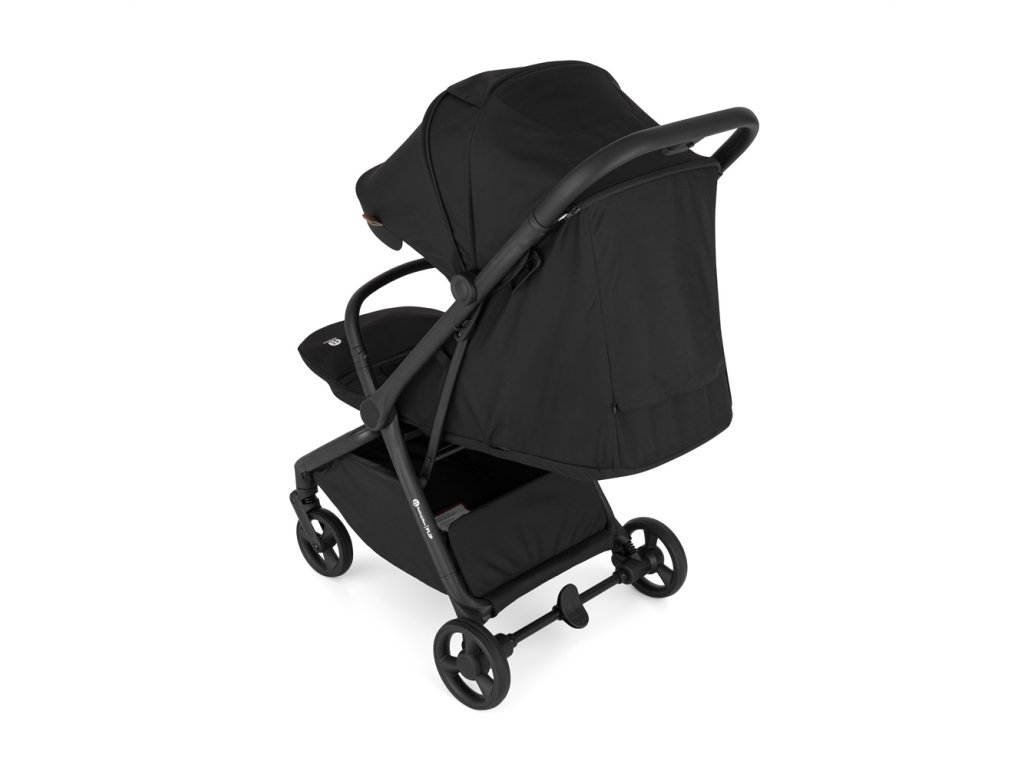 Elegantný čierny rám, prešitý poťah a madlo aj rukoväť z čiernej eko-kože z neho robia kočík, ktorý zaujme na prvý pohľad.